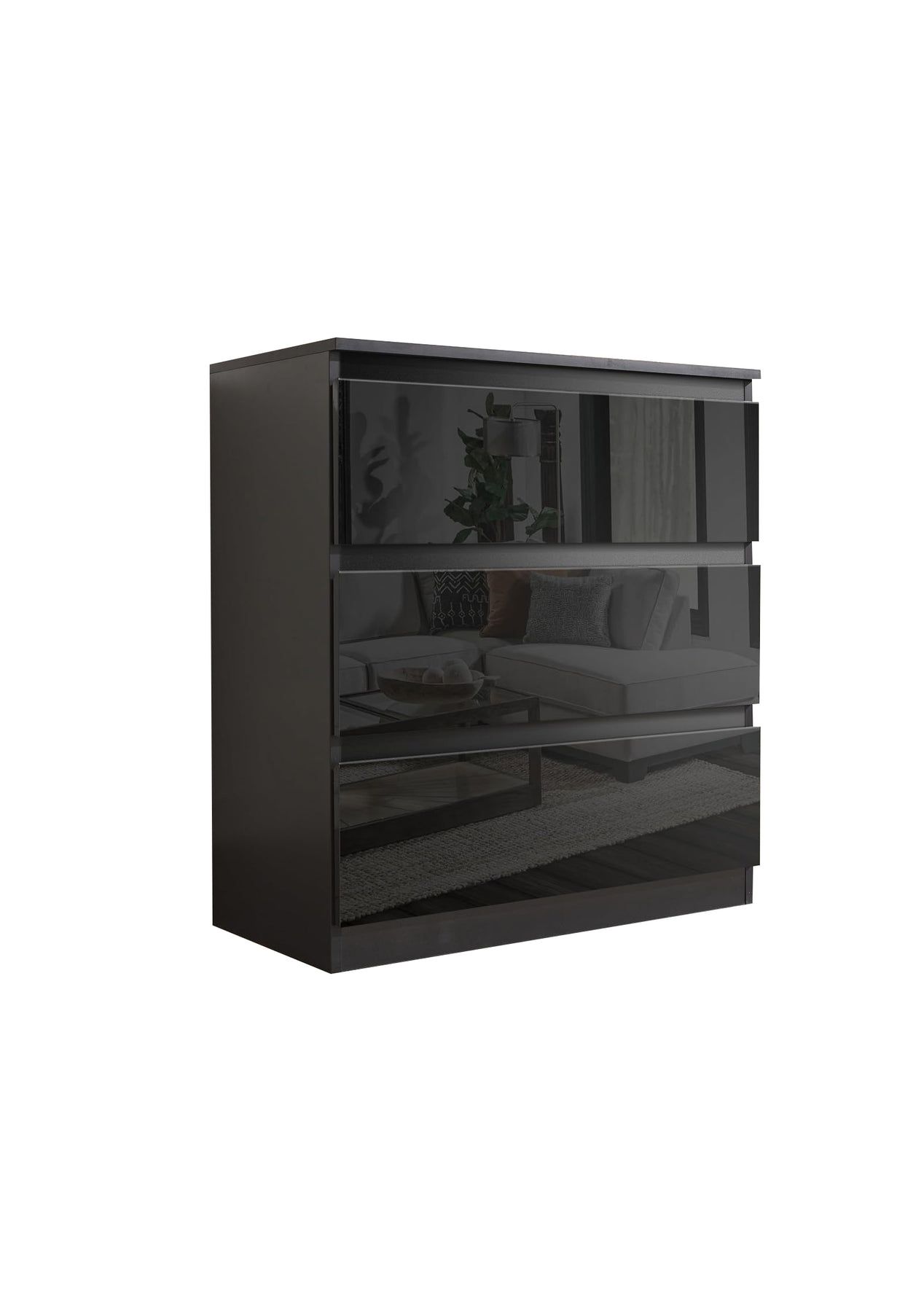 Serena 3-Drawer Chest - Glossy Black The Serena 3-Drawer Chest combines simple, elegant & practical. It offers timeless style with everyday function. Made from durable particleboard and MDF with a smooth glossy melamine finish, it's built to last. It provides plenty of storage space with 3 generously sized drawers for all your essentials, while the clean design makes it perfect as extra storage in any modern home.Pair it with matching drawers or a wardrobe from the Serena Collection to complete your bedroom effortlessly. Features:Clean, simple lines with a 45° handleless designSturdy construction with heavy-duty fixings for durability3 compact drawers with smooth metal runnersQuick and easy assembly with included hardwareAvailable in 3 versatile colours to match any décor Specifications:Color: Glossy BlackMaterial: Particleboard and MDF with Glossy FinishProduct Dimensions: 70 cm (L) × 40 cm (W) × 77 cm (H)Assembly: Required Package Contents:1 x Serena 3-Drawer Chest Glossy Black (flat-packed in box)1 x Assembly instruction manualAll required screws and fittings included Aka: Drawers / Storage / Cabinet / Tallboy