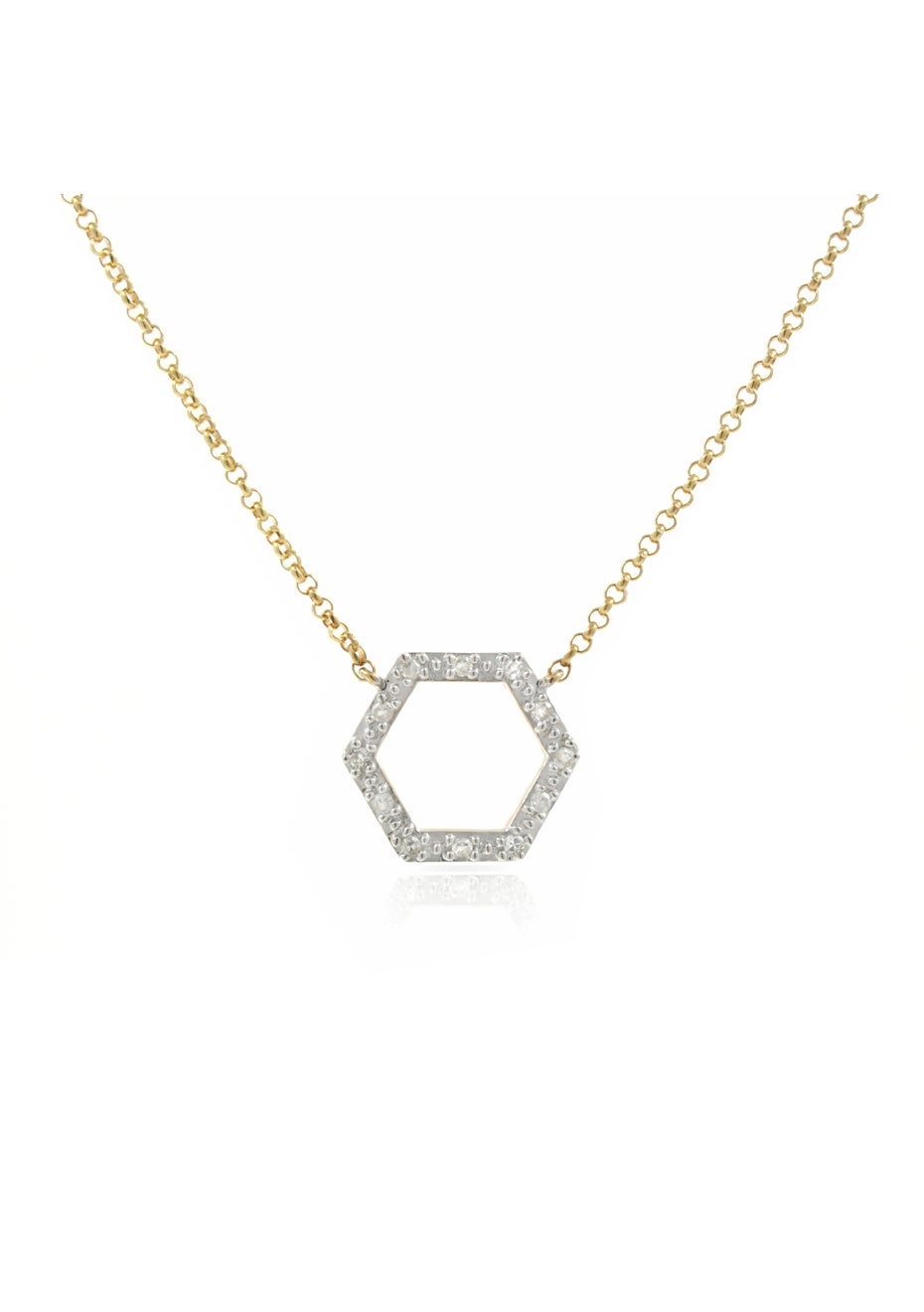 This sparkling diamond pendant is the perfect blend of modern style and classic elegance. Set in warm 9ct yellow gold, its symmetrical design and dainty size make it an effortless statement piece. A beautiful gift or a treat just for you. Details: 12 genuine diamonds Total diamond weight: 0.062ct H colour, I1 clarity Pendant approx. 10mm x 10mm 41cm chain + 5cm extender for flexible styling 1.68g of 9ct yellow gold Ships within 2 working days Stylish, sparkly, and ready to shine