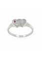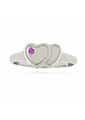 Sterling Silver Created Ruby Double Outline Heart Signet Ring