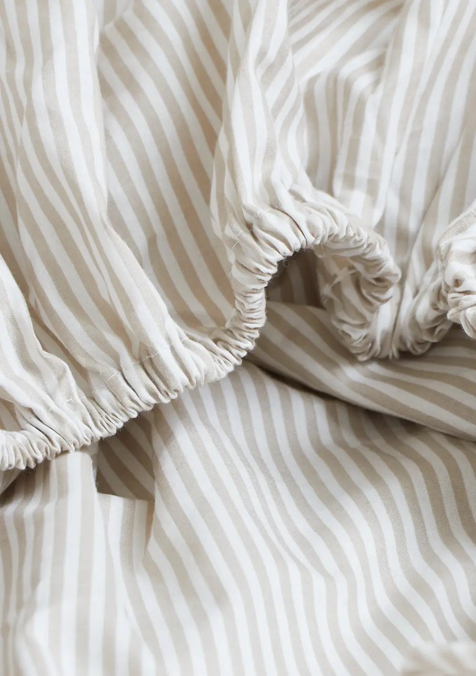 George Collective - 100% Stonewashed Cotton Fitted Bassinet Sheet - Natural StripePREORDER