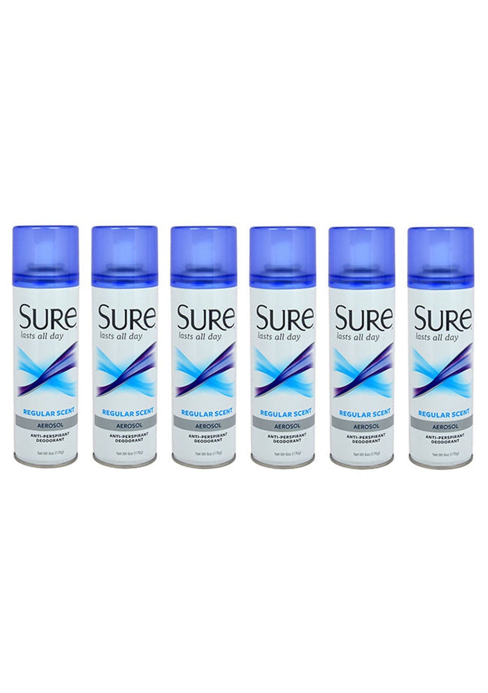 Sure Aerosol Regular Scent Anti-Perspirant and Deodorant by Sure for Unisex - 6 oz Deodorant Spray - Pack of 6