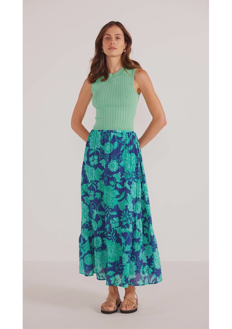 MinkPink - Connie Tiered Midi Skirt - Mint Navy Floral