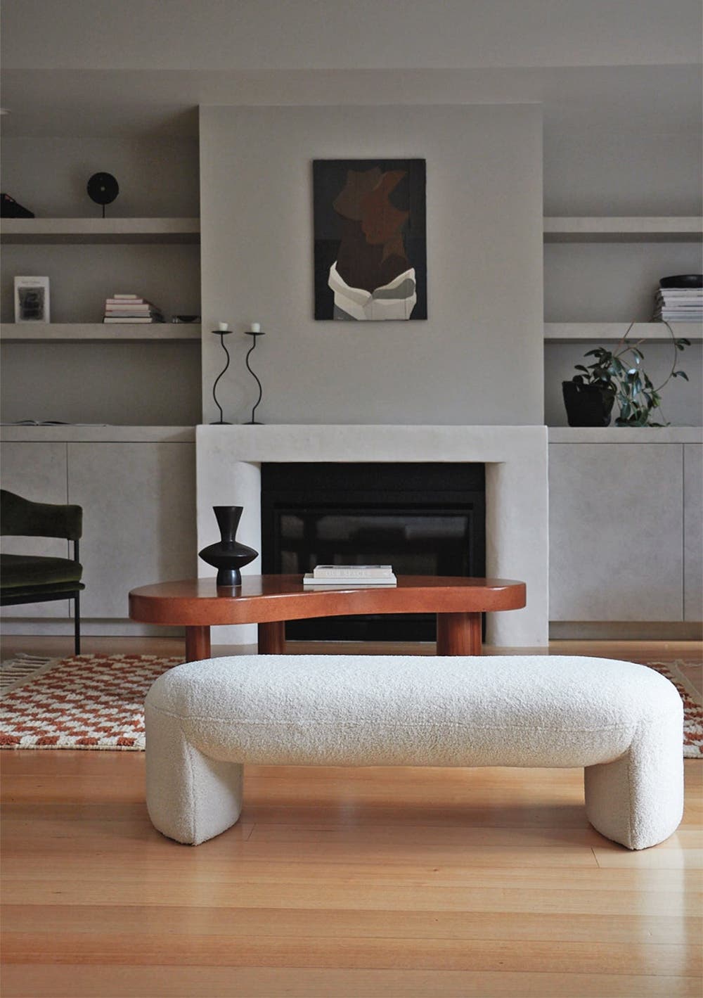 Designed Exclusively for Onceit, our George Collective brand is a contemporary and premium range for the home. An eye catching accent piece with channelling and organic curves. This bold and sculptural bench is perfectly suited to a contemporary home whether in the bedroom, entranceway or living room. Upholstered in a textural boucle fabric, this bench will be a favourite for years to come. Length: 116cm Height: 35cm Seat Depth: 44cm Product Weight: 11.4kg Fabric: 100% Polyester Boucle Filling: High-medium Density Foam Frame: MDF