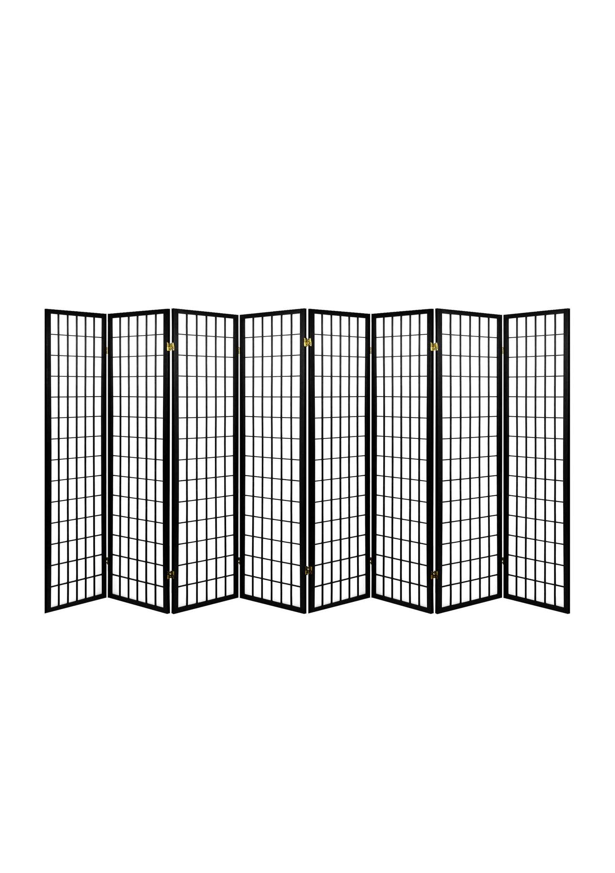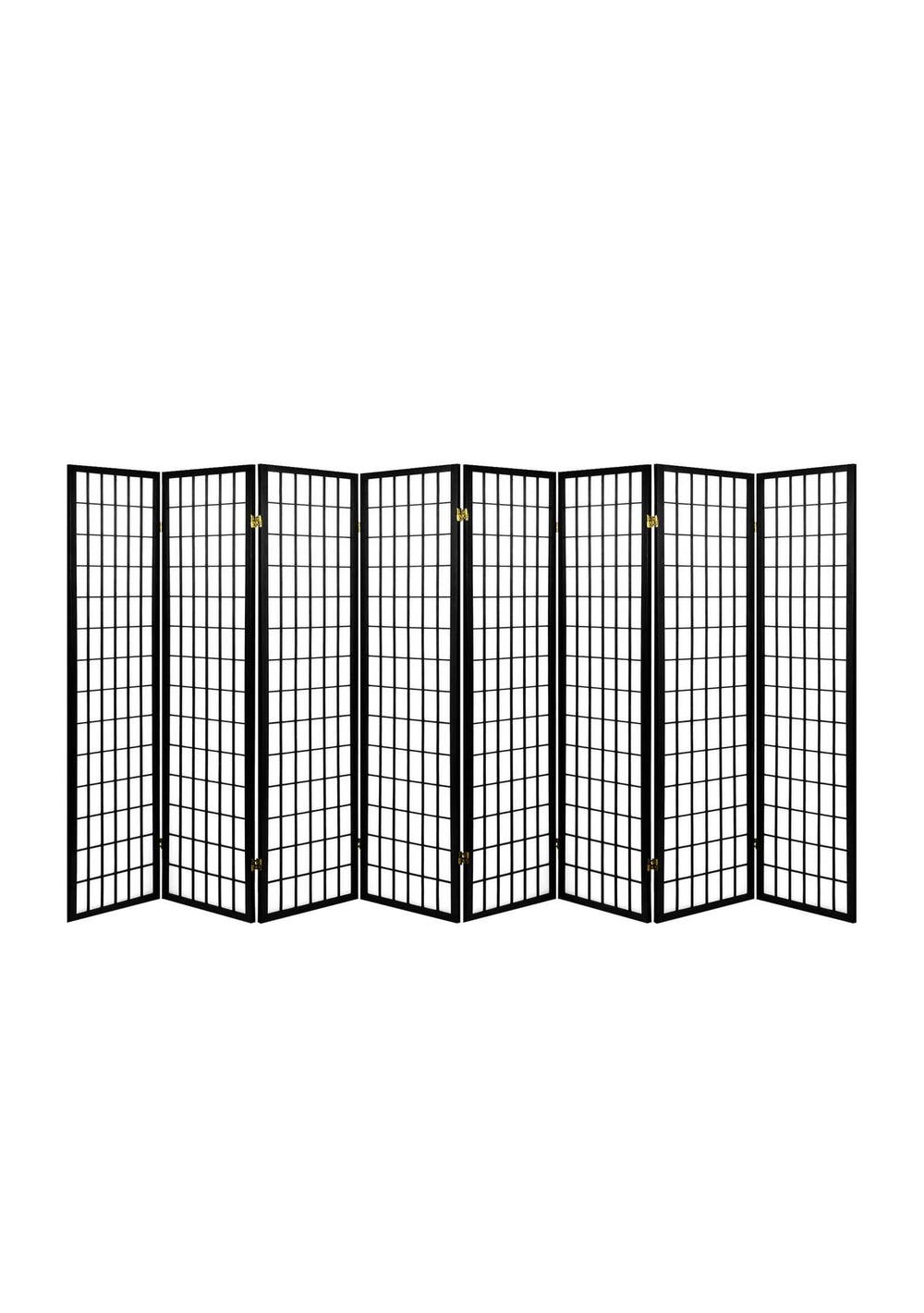 PR72113 - Room divider C M1-8 blackConsider using our Room Divider to create private pockets, simply dividing a large room into separate areas to create new focus points. Designed with a touch of oriental flair, our 8-panel Room Dividers look good from any angle. The pine wood construction of the Room Divider is strong and sturdy to stand up to the task and easily maneuvered to anywhere that needs it. The screen itself of the Room Divider is made of non-woven fabric, when not in use, the Room Divider can be folded and stored away for its next use. So start creating some layered space with our durable Room Dividers and give your home a whole new dimension to it.Room Divider Features: Brand NewPine wood constructionNatural material of Room DividerNon-woven fabricThe practical screen of Room DividerEco-friendlyRoom Divider's Foldable panelsFlexibleRoom Divider Specifications:Room Divider Material: Finger-Jointed Pine Wood + Non-woven FabricRoom Divider Color: BlackPanel size: W430xH1783xD15 mmRoom Divider Panel: 8Room Divider Package Contents1pc/carton for Room Divider