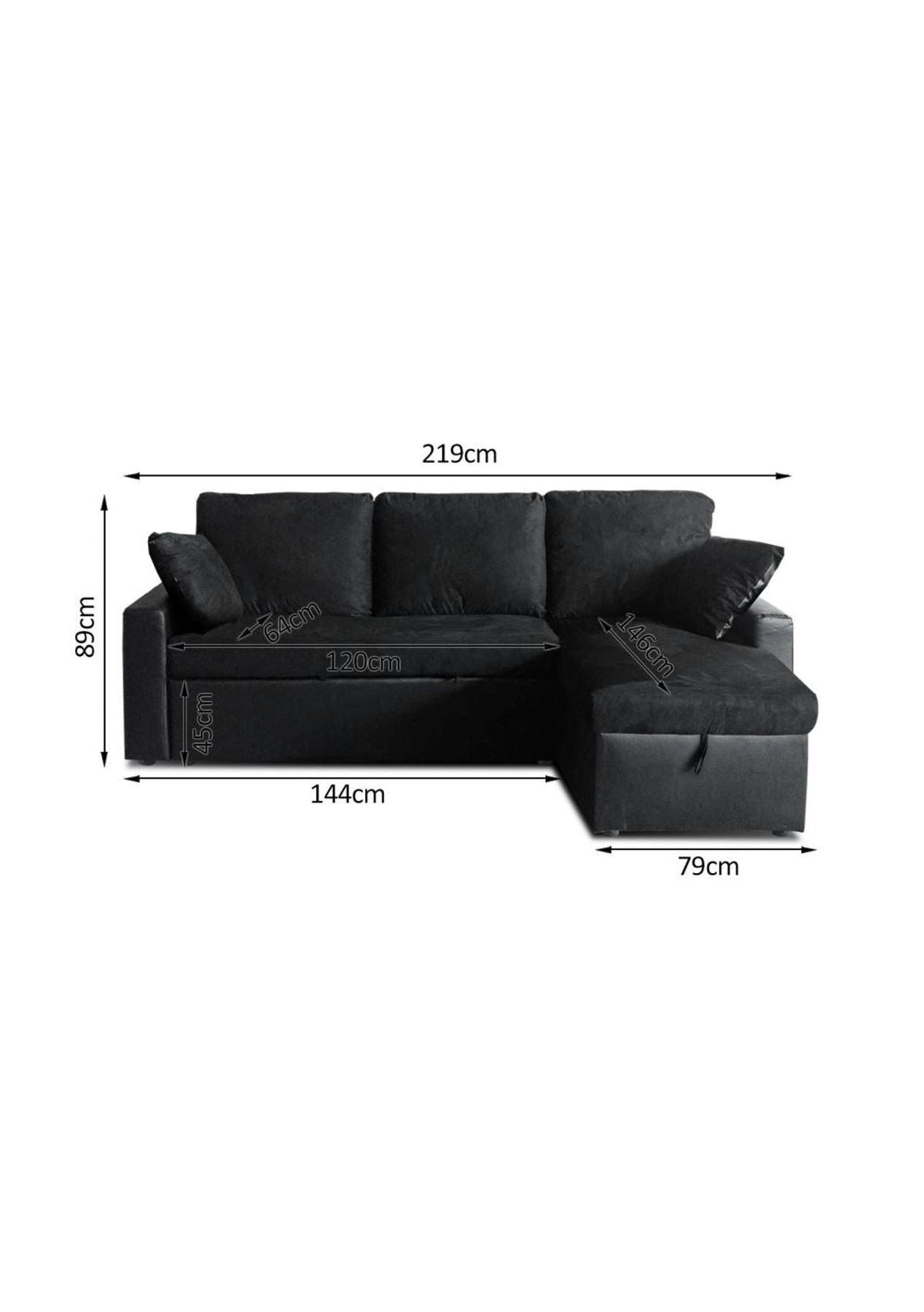PR2291 (1) The Black has a charming appeal that will complement your current decor and provide comfortable seating you can snuggle into and enjoy while reading a book or chatting with guests. In addition, the 3 Seater is a simple, yet very functional sofa bed. It transforms in an instant from a relaxing sofa to a spacious and supportive bed.Features* Modular, Sectional Sofa with Storage and sofabed* Left/Right reversible & 2 pillows* Microfiber & PVC for sturdy construction* Contemporary and stylish* Quality fabric* Highly practical and space saving* Extra thick seat cushioning* Sinuous spring construction making it a more durable seatSofa size:128*82*89/45(seat high)chaise:146*72*89/45(seat high)sofa bed size:222*146*89/45 Weight Capacity: 350Kgs Please click here for Assembly Instruction. Package Dimensions: Box A 130cm x 41cm x 82cm Box B 147cm x 39cm x 72cm Box C 116cm x 16m x 82cm
