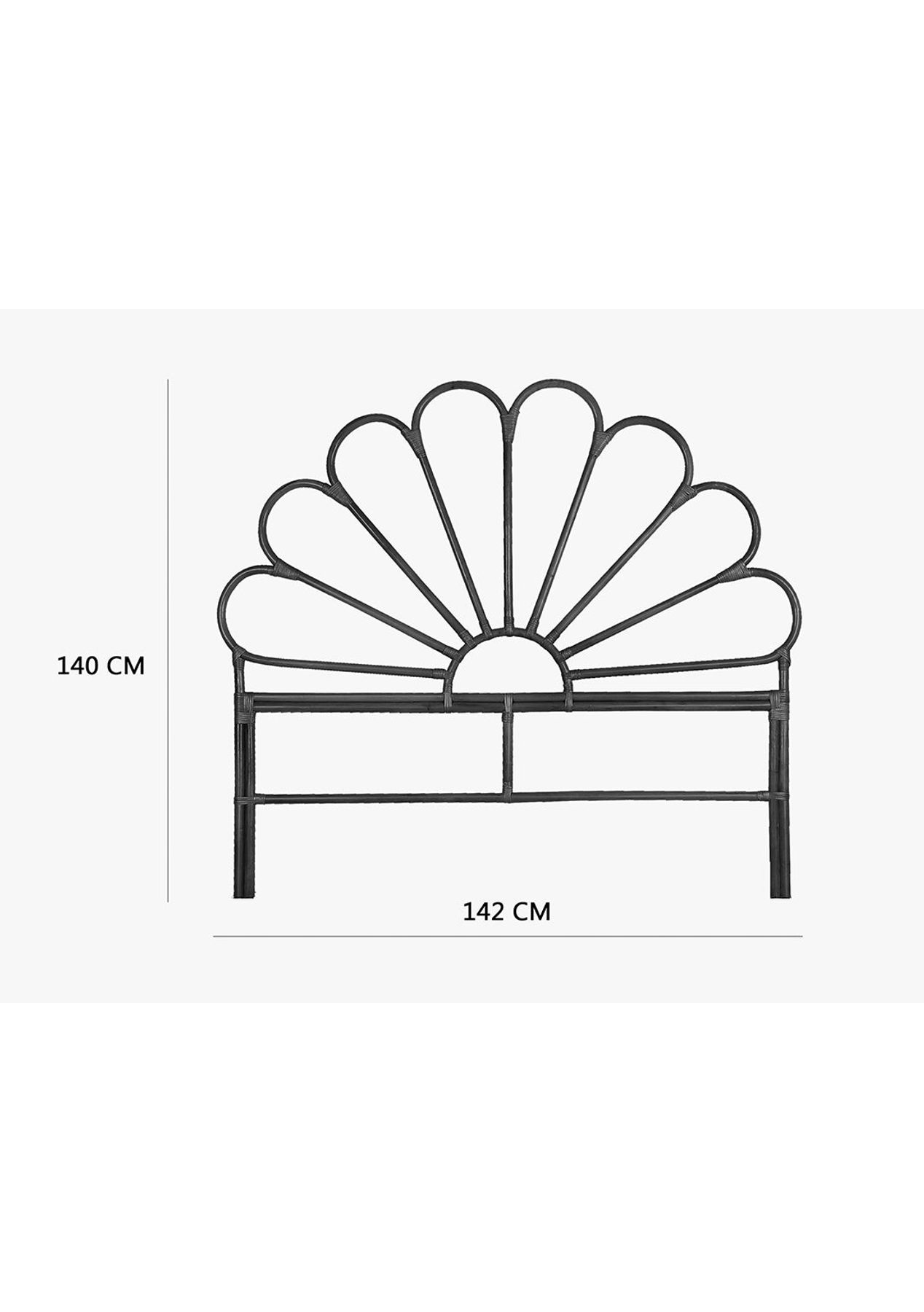 PR8323 Rattan Bedhead Petal - Double BlackYou will fall in love with it at first glance with our newest rattan headboard. Beautifully and wisely weave in different patterns of nature for you to choose. It gives you more room for imagination and creativity. Natural rattan materials, coupled with warm handcrafted, make this product full of nature flair, distributed in every corner of your bed room. Simply place it against the wall and push up your bed against it. Crafted in 3 sizes and colors. Get the one you like today! ==Features==* Natural rattan* Handcrafted* sturdy* No assembly required * Color: Black* Product size: 142(W)*3(D)*140(H)cm* PLEASE NOTE that as this is hand crafted from natural material, there could be slight variations including color and dimensions Package Dimensions:145cmx5.5cmx143cm