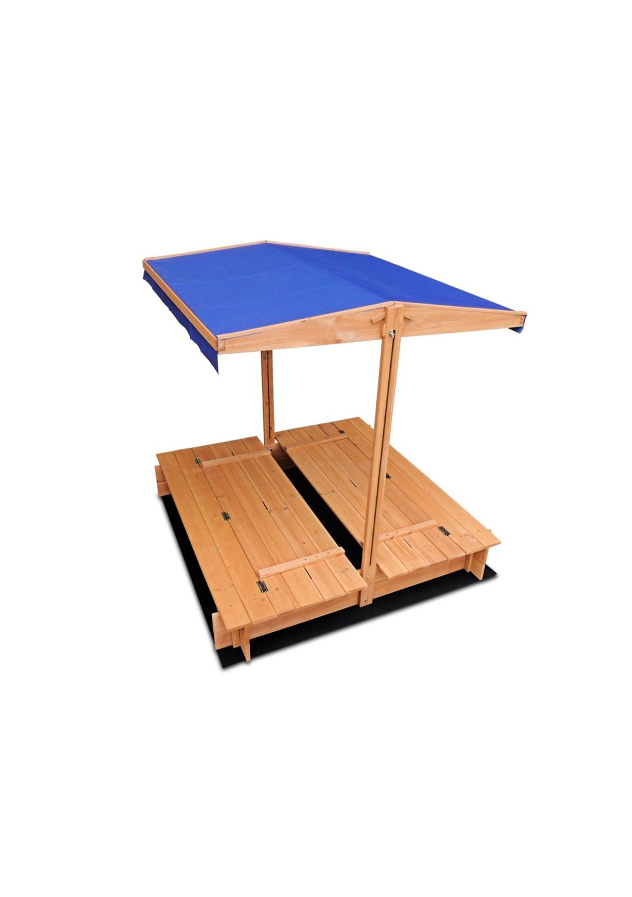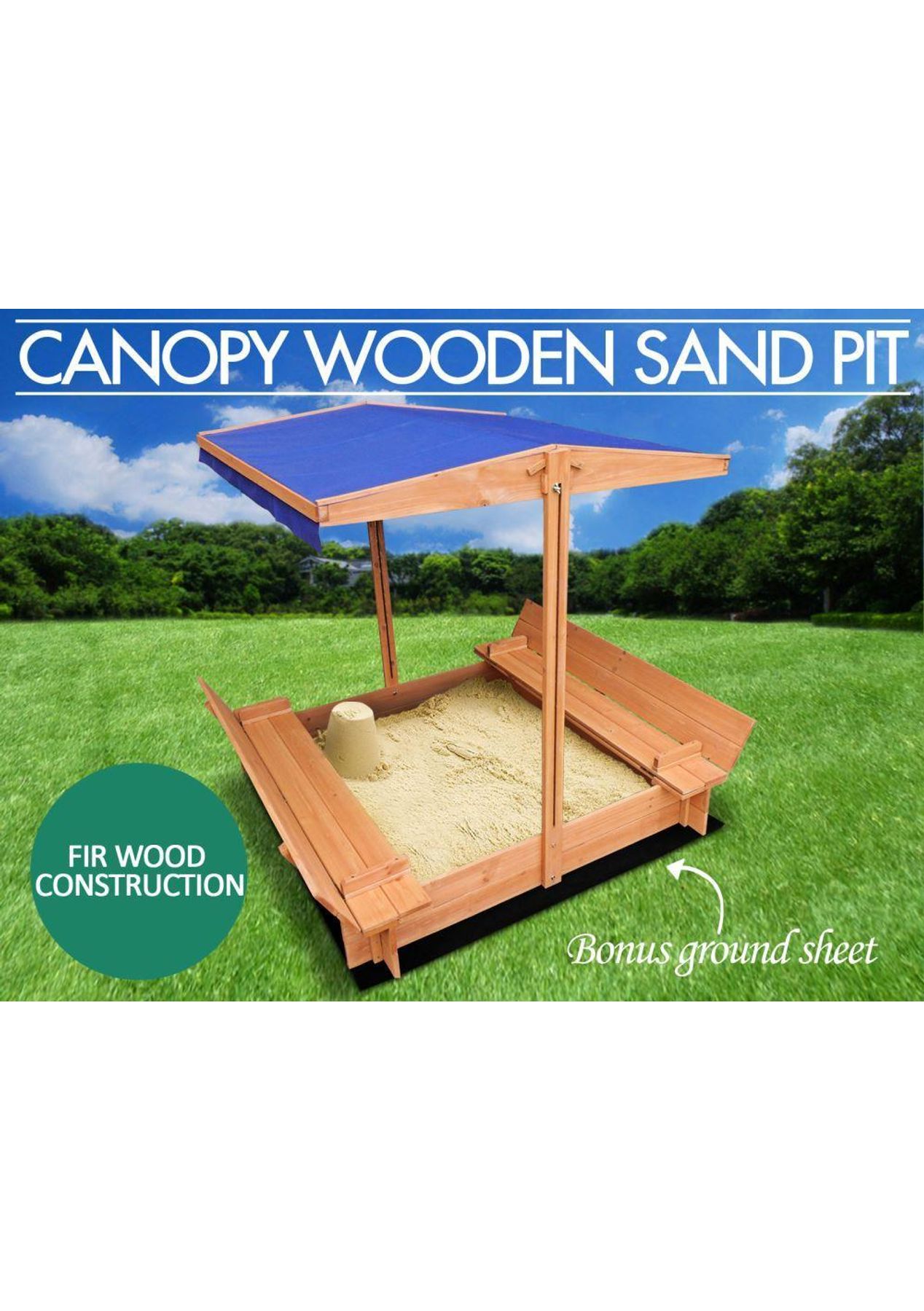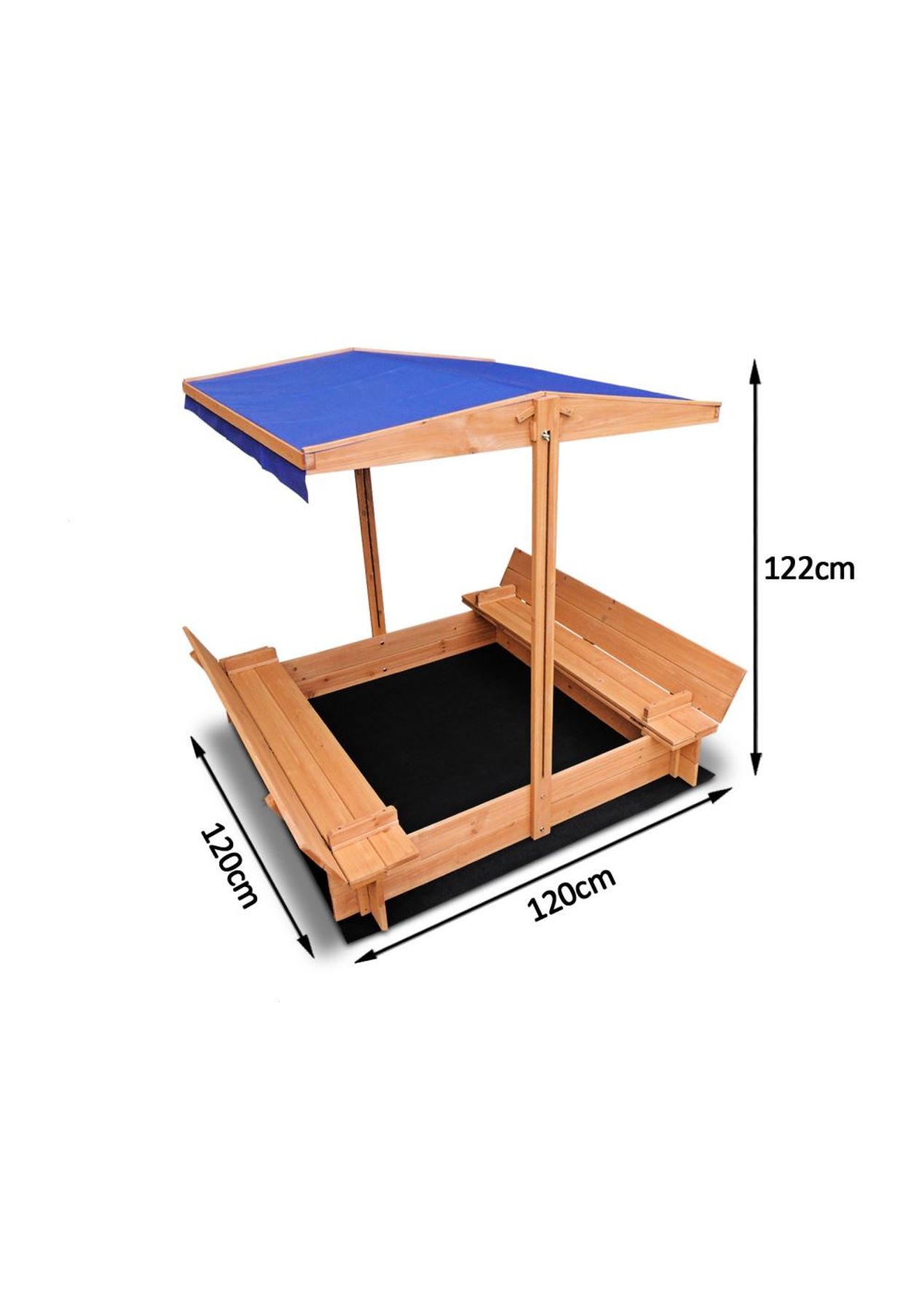 PR1434 Made with quality fir wood with a smooth and natural finish is perfect for extending play time! Our fabulous sandpit comes equipped with a canopy protecting from the sun rays and rain. Your kids will stay happy and cool while at play in this amazing outdoor toy. Also comes with an internal ground sheet separating the grass and insects from getting into contact with the clean sands and allowing water to drain out of the sand box. When not in use, the seats are foldable and cover the sandpit to keep out debris and animals. Great for single or groups of children to play it , children will have hours of outdoor fun in this amazing sand pit. Letting your children’s creativity run wild, digging, building and creating shapes in the sand pit this summer. NOTEALWAYS COVER THE SANDPIT WHEN NOT IN USEREULARY CHECK SAND FOR IMPURITIES AND SHARP OBJECTSUSE WASHED PLAY SAND SUITABLE FOR USE IN CHILDREN’S SANDPITADULT SUPERVISION RECOMMENDED AT ALL TIMEFEATURESGreat outdoor fun for kidsRounded corners for added safetyTwo benches for children to sit comfortablyAdjustable roof Foldable benchHigh quality canopy keeps out the sun and waterConstructed from long lasting fir woodChair can be folded, tiled bunkerAllowing kids to have great fun while keeping cool in shadesEncouraging outdoor play and exercisesComes with a ground sheetEasy to assembleSPECIFICATIONDimension: 120x120x122 cmColour: Natural wood Please click this link for instruction manual