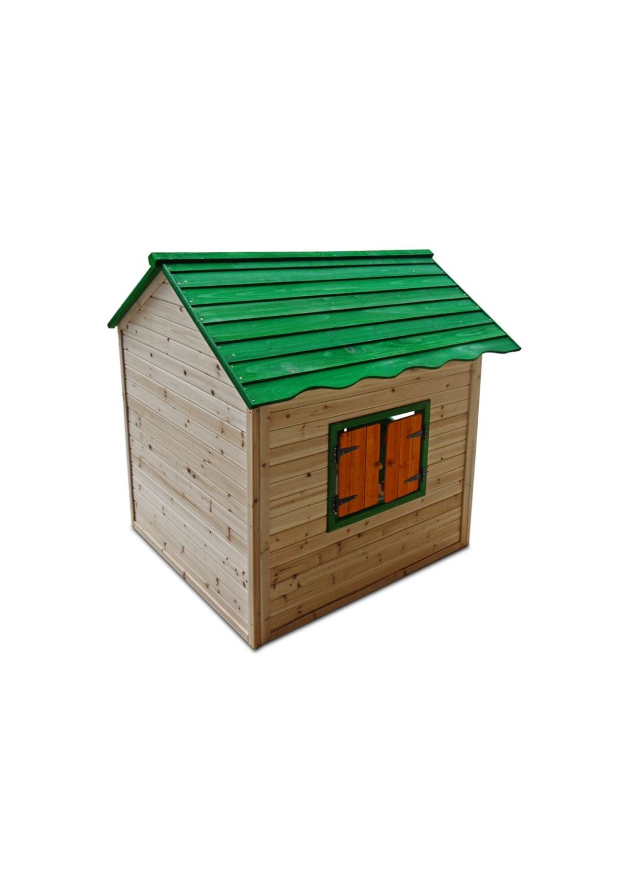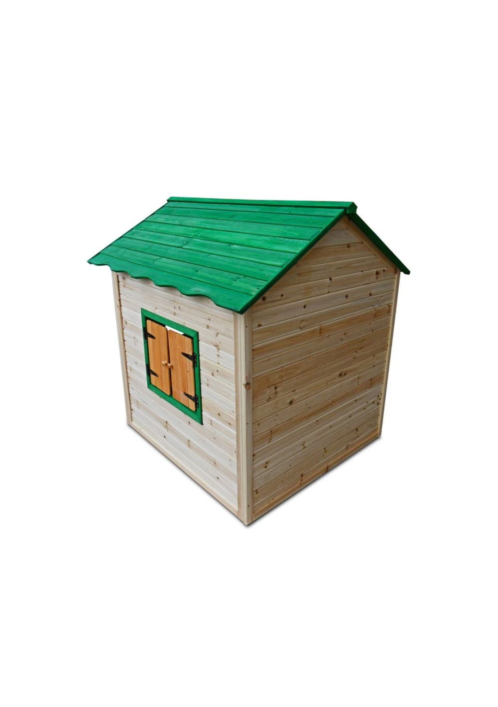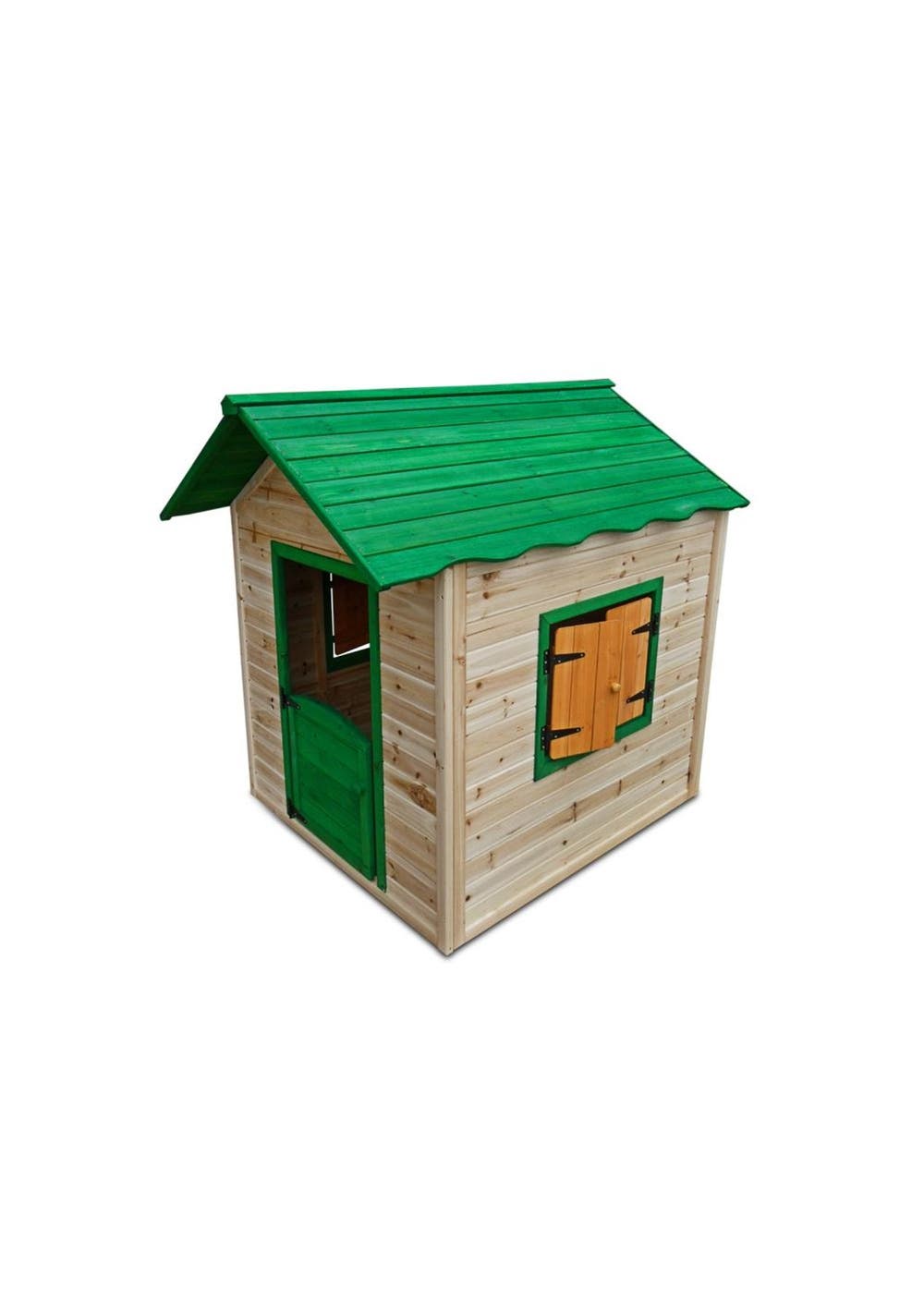 PR1431 *NOTE: SUITABLE FOR CHILDREN OVER 3 YEARS OF AGE. ADULT SUPERVISION IS REQUIRED AT ALL TIME.* Let your kid enjoy an active childhood in their own outdoor wooden playhouse. The little one will enjoy hours of fun in the perfect playhouse, inviting their friends or maybe spending the whole afternoon in it. Playhouse has viewing windows and a swinging front door to add a touch of real-life to the playhouse. Made from durable fir wood that is designed to last. It is built last with a weather-resistant roof, good for rain and sun heating protection. It allows your kids to explore a whole new world without leaving the backyard. Encourages kid's imaginative play with its realistic design and inspires them to 'play house' in their own personal space. It will be a perfect gift for the little one, they will love it for sure.FeaturesIncredibly lifelike designDurable sturdy fir wood constructionSwinging entry door at the frontViewing window to add the realismGreat for backyard and outdoor play areasTimber roof for rain and sun heating protectionNo glass material for added safetyNo floor in the houseAssembly requiredSpecificationsProduct Dimension: 1340x1160x1340 mmColour: Green, orange and natural wood in colour Package Dimension A : 134cm*107.5cm*9cmPackage Dimension B : 143cm*97.5cm*8cm