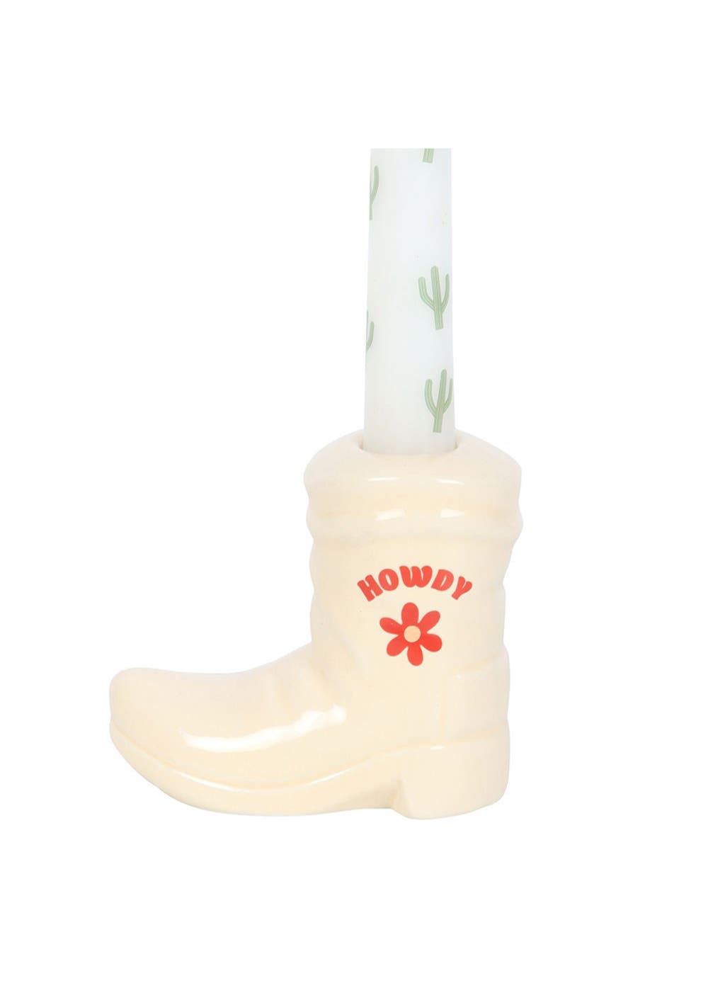Cowboy boot candle holder with candle