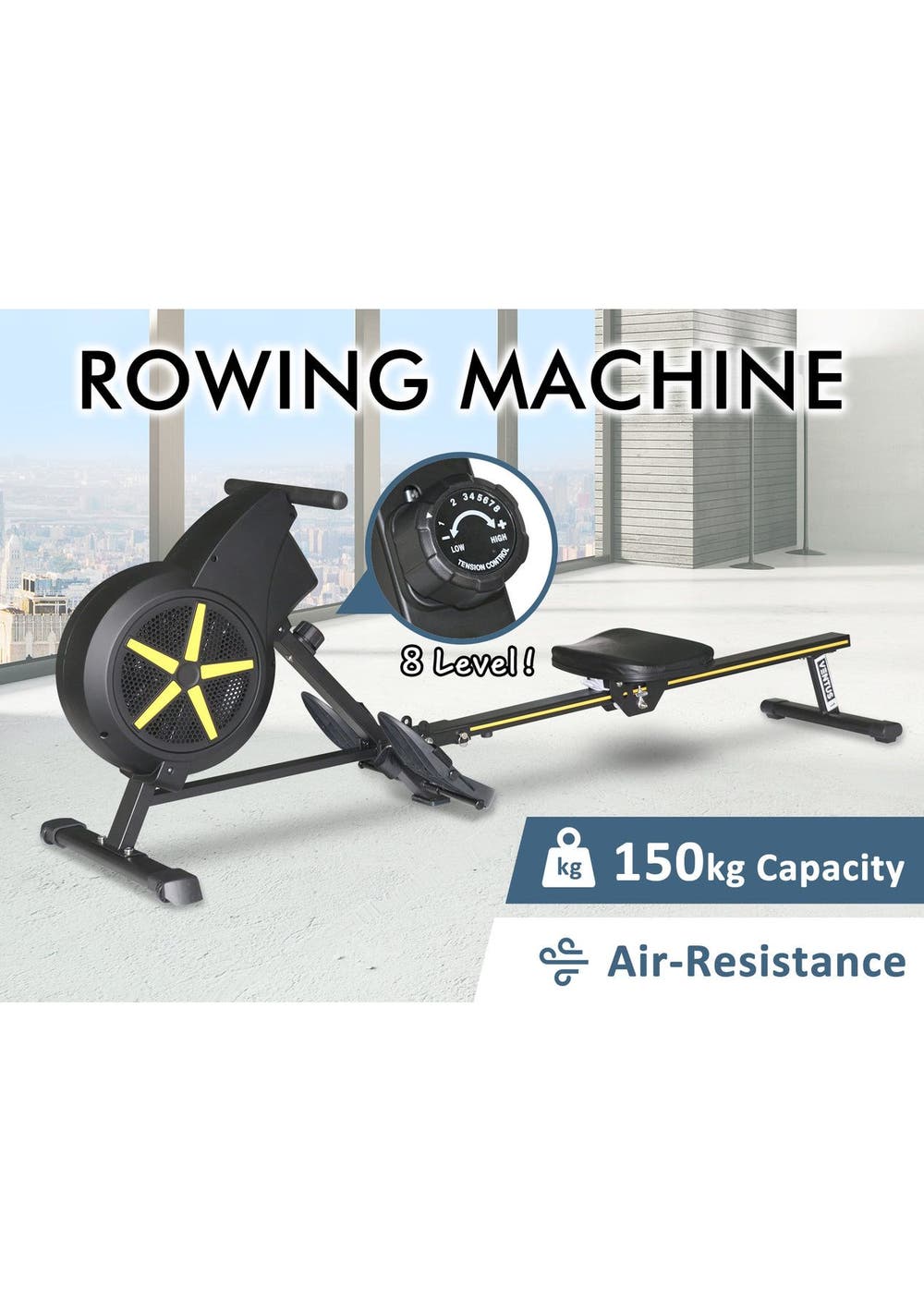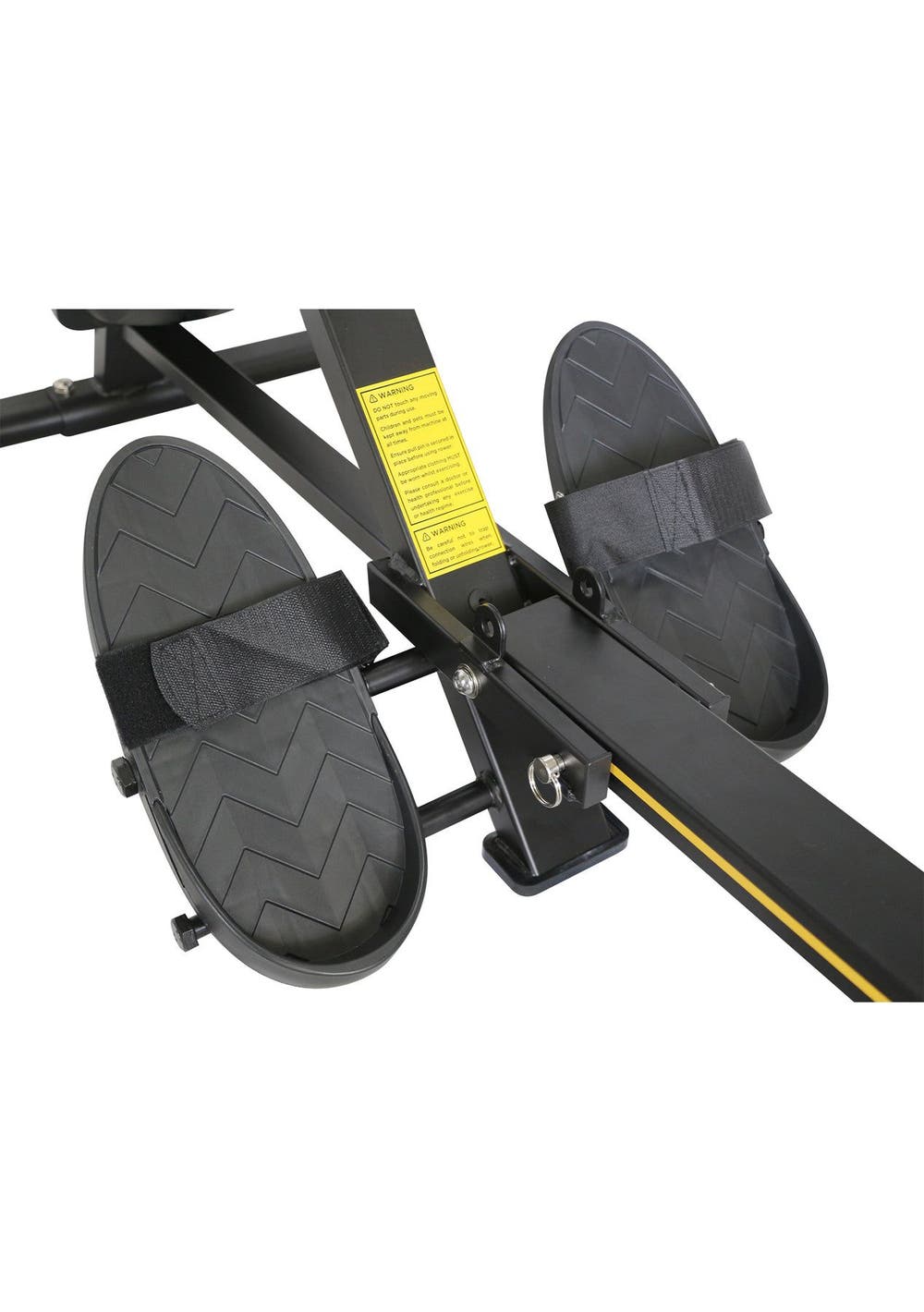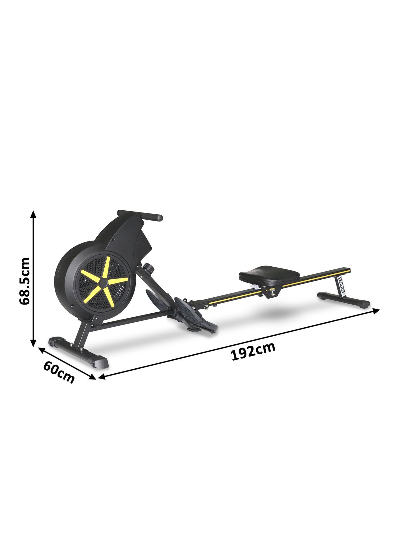 PR66615 If working out is your favourite thing to do, then this PROTRAIN Rowing Machine is just the thing for you. Featuring eight resistance levels utilizing an air resistance system, this rowing machine is ideal for working large muscle groups at your back, legs, arms and abs as well as providing great cardio at the same time. The wheel glide rail system is made of durable steel while the moulded seat and adjustable footrest lets you work out safely and comfortably. You can easily check on your workout rate with the large LCD display to ensure desired results at the right pace. With a weight capacity of 150kg, any gym junkie can use this PROTRAIN Rowing Machine to his or her body’s content both day and night (it works very silently) without stirring up the neighbour.FeaturesAir resistance systemEight resistance levelsQuiet operationBig LCD displayWheel glide rail systemDurable steel made glide railCommercial comfort moulded seatAdjustable large footrestSpace-saving foldable designNon-slip standSpecificationsBrake system: Air Resistance and BeltResistance level: 8Row length: 130cmGlide frame material: SteelOverall dimension: 189 x 63 x 60cmWeight capacity: 150kgColour: BlackContentsRowing Machine x1 package dimension:114.5x76.5x26cm. Please click here for the assembly instructions