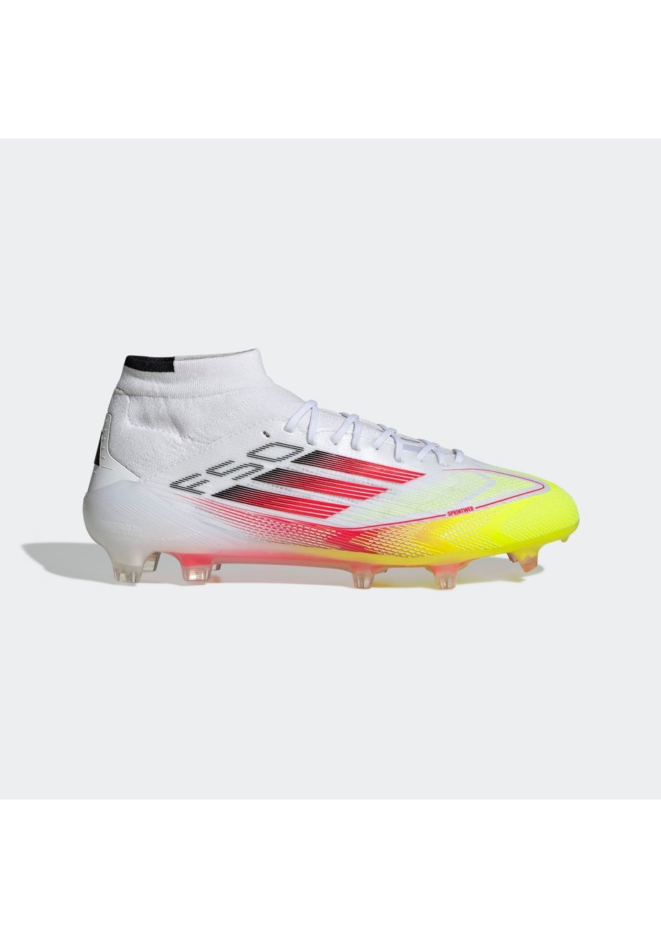 Push your pace to the limit in lightweight adidas F50 footwear engineered for speed. Featuring an adidas PRIMEKNIT mid-cut collar and thick sockliner for a supportive fit, these Elite football boots are built specifically for female athletes. The thin Fibertouch upper has a Sprintweb 3D texture to help keep the ball close when you're flying, and that springy Sprintframe 360 outsole gives you serious acceleration on firm ground.