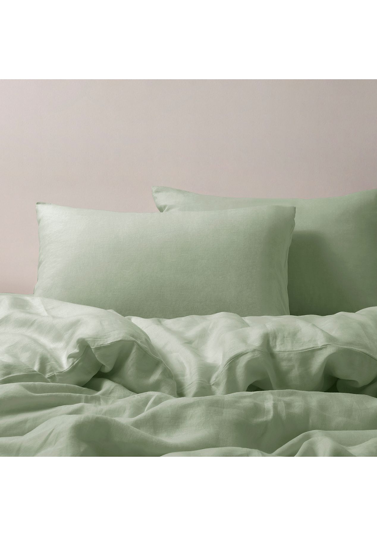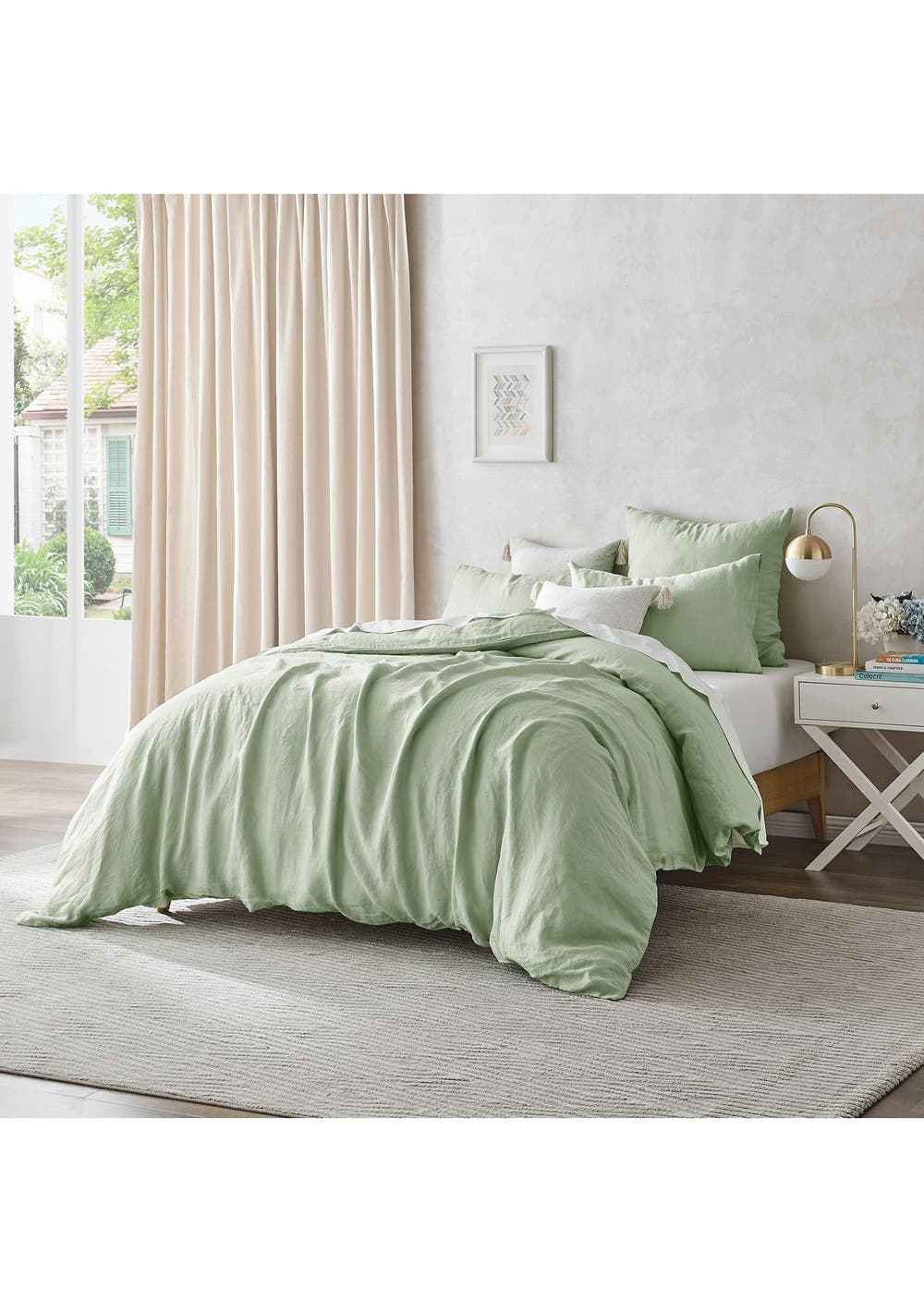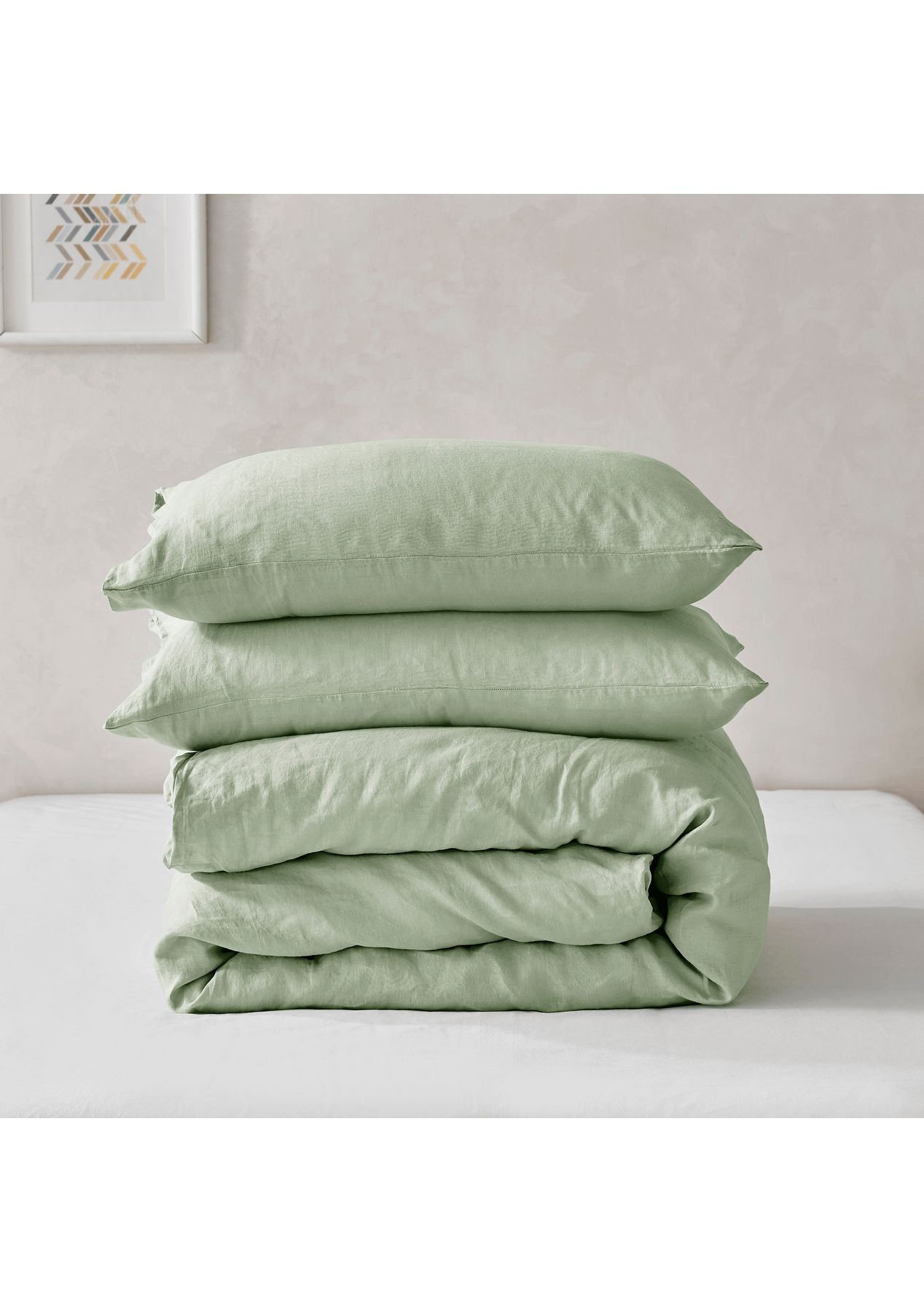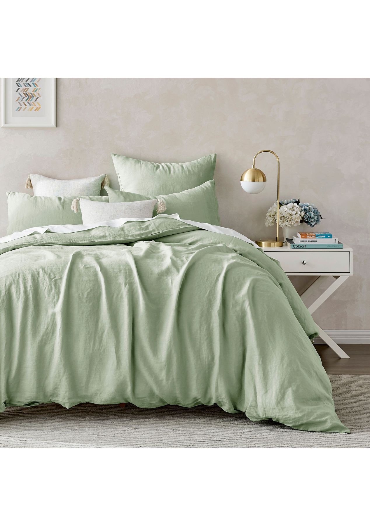 Natural Home Linen 100% European Flax Linen Quilt Cover Set Willow Green King Bed