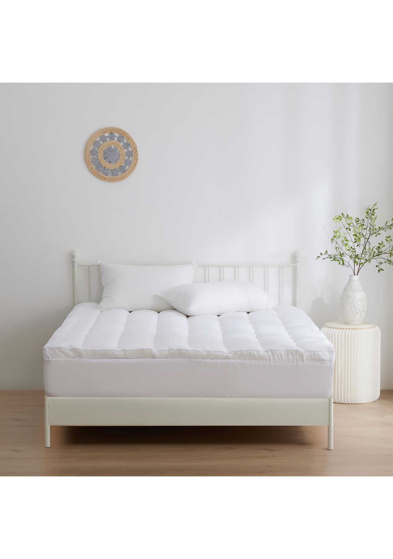 Experience cloud-like softness with our Sleepcare 1200GSM Microfibre Mattress Topper, designed to mould to your body for the perfect balance of comfort and support. The ultra-soft brushed microfibre cover creates a smooth, silky sleep surface, while the generous 40cm skirt - stretching to 45cm ensures a secure fit on deep mattresses. Machine washable for easy care, this topper is a cost-effective way to revitalise your old mattress - no dry cleaning or expensive replacements needed. Ideal for those who want a plush yet supportive sleep upgrade. Features • Plush 1200GSM fill offers cloud-like softness and support • Brushed microfibre cover adds a smooth, breathable surface • 40cm skirt stretches to 45cm for a secure mattress fit • Machine washable for easy, hassle-free cleaning • Refreshes old mattresses without the cost of replacing • Contours to your body to relieve pressure and improve posture Size Single: 91 x 190 + 40cm Long Single: 91 x 203 +40cm King Single: 106 x 203 + 40cm Double: 137 x 190 + 40cm Queen: 152 x 203 + 40cm King: 180 x 203 +40cm Super King: 204 x 204 + 40cm Colour White Materials Cover: 1200gsm Brushed Microfibre Fill: Polyester Bottom: Microfibre Skirt: Polyester Care Instructions Air well before use. Gentle machine wash in warm or cold water using mild detergent only. Tumble dry on low heat or line dry in shade. Do not dry clean. Do not bleach. Do not iron. Regular outdoor airing for best results. Made in China
