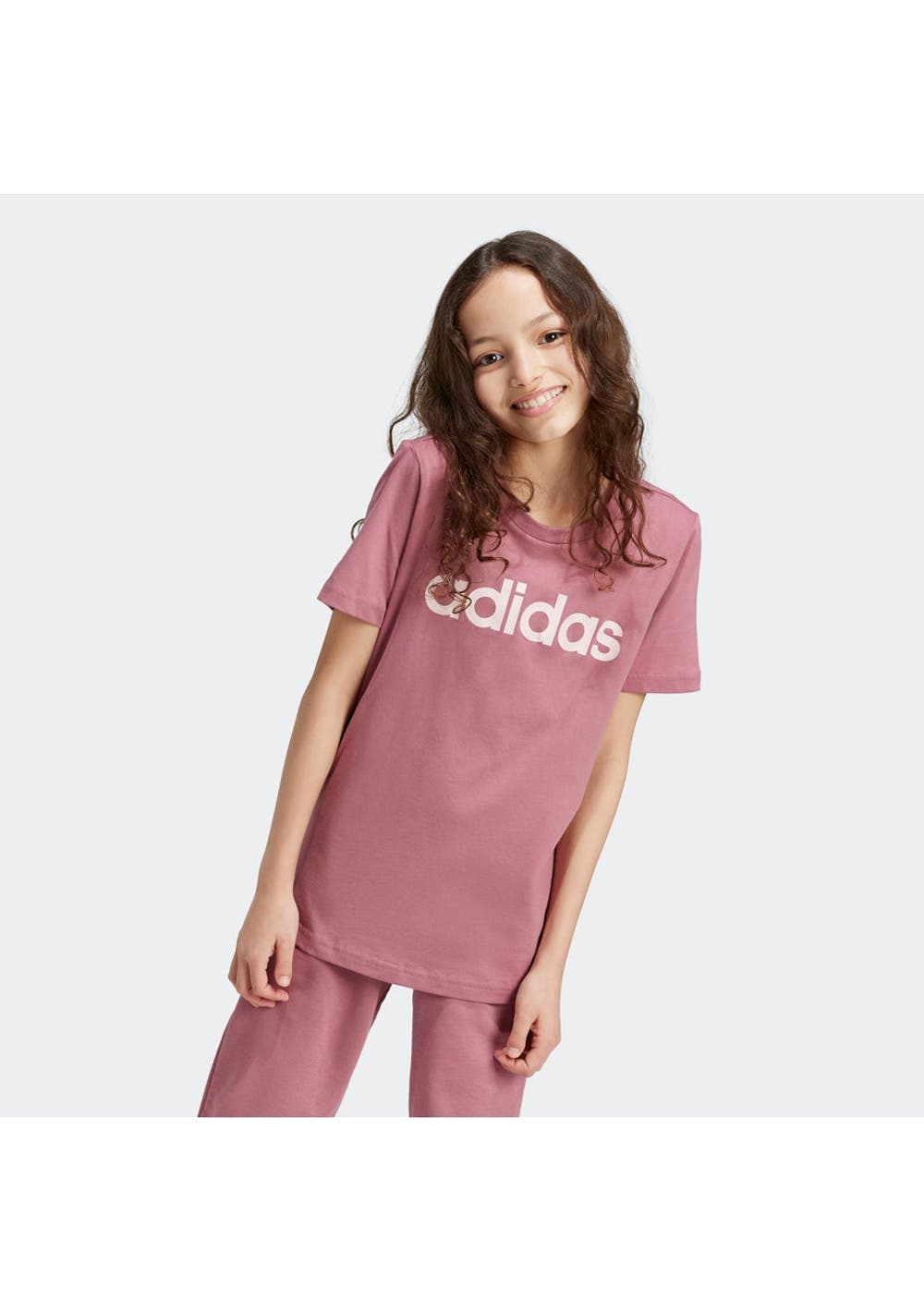 Adidas - Girls - Essentials Linear Logo Cotton Slim Fit T-Shirt - Preloved Crimson/Sandy Pink