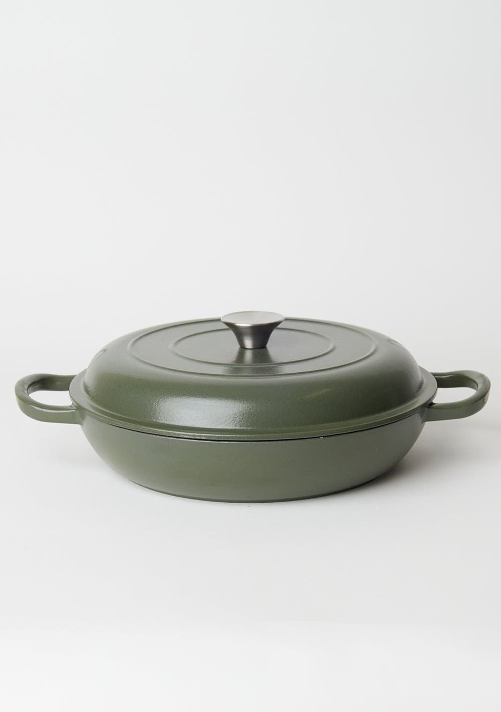 George Collective - Cast Iron Shallow Casserole 30cm - Matte Olive/ Silver Lid