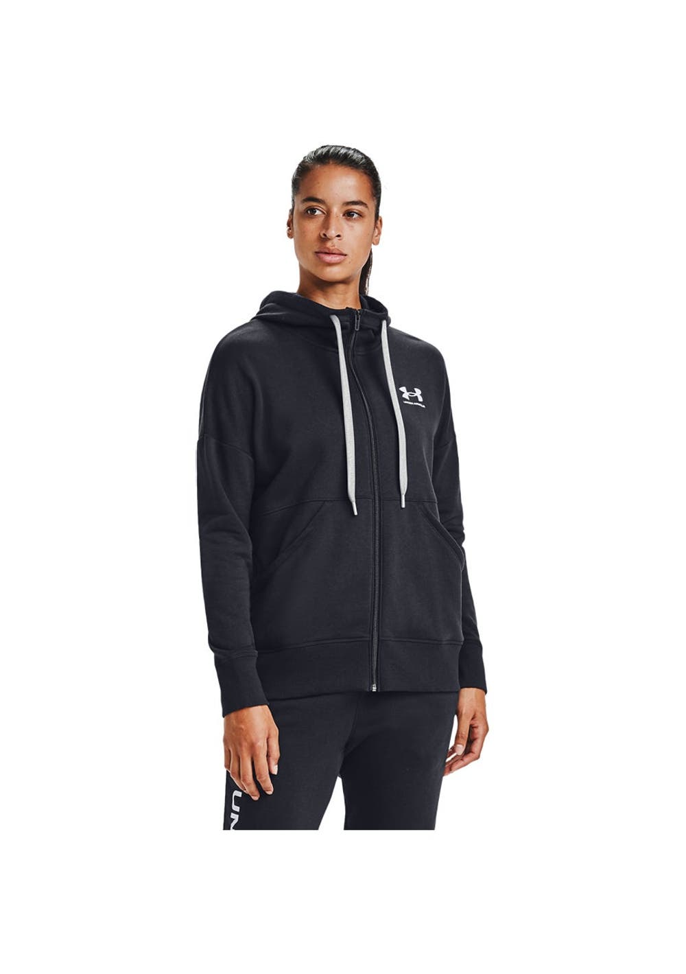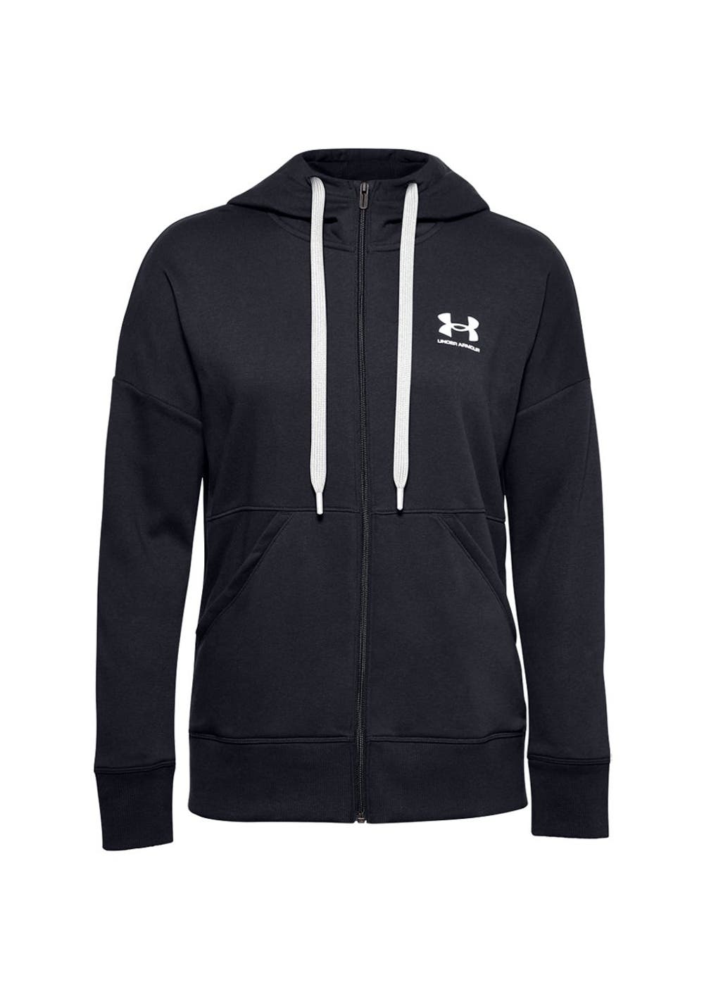 Under Armour - Womens Rival Fleece Full Zip Hoodie - Black/White/White