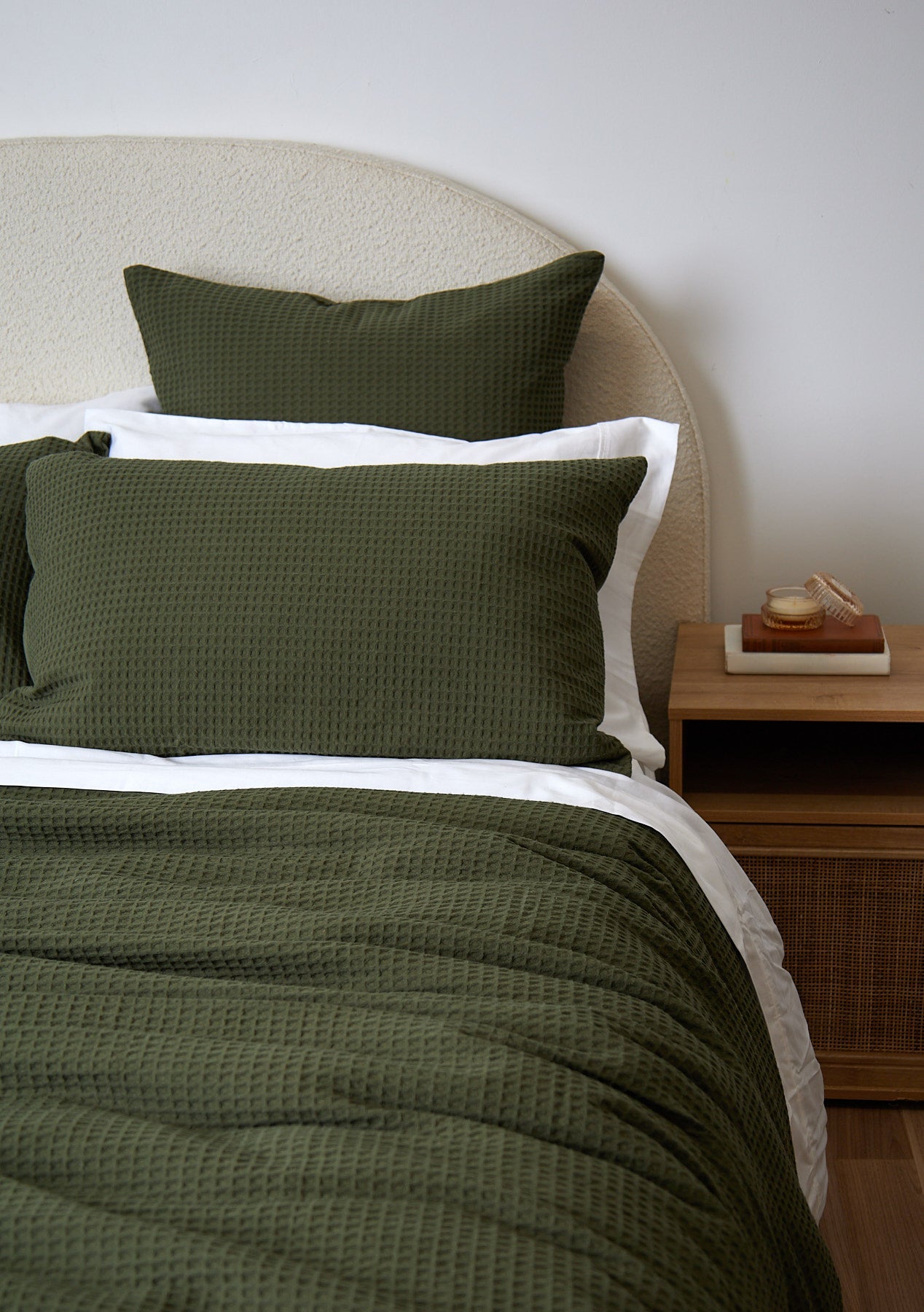 George Collective - 100% Cotton Waffle Duvet Cover Set - King - OlivePREORDER