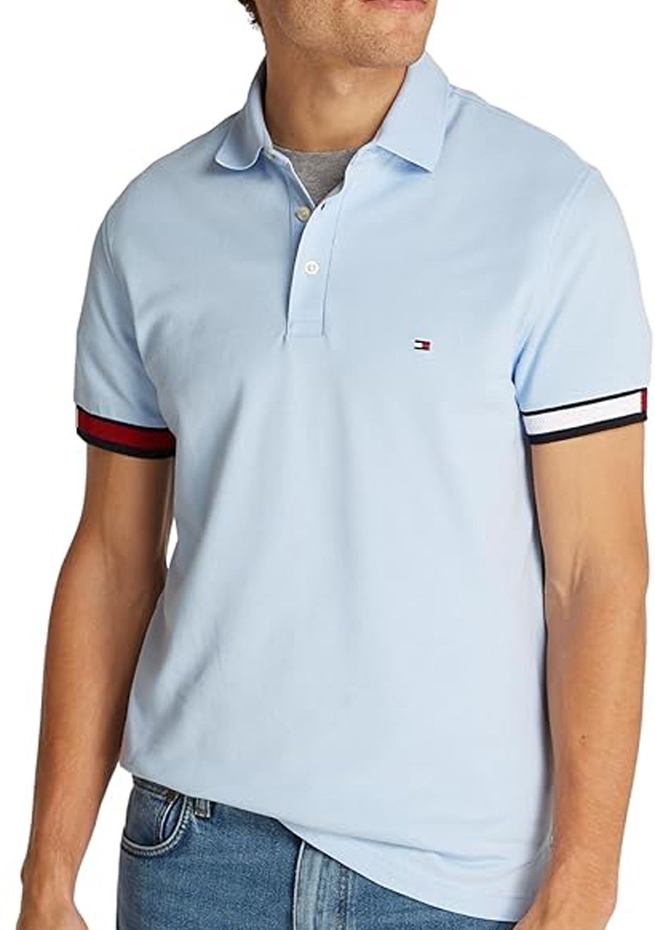 Tommy Hilfiger - Mens Flag Cuff Slim Polo - Sweet Blue