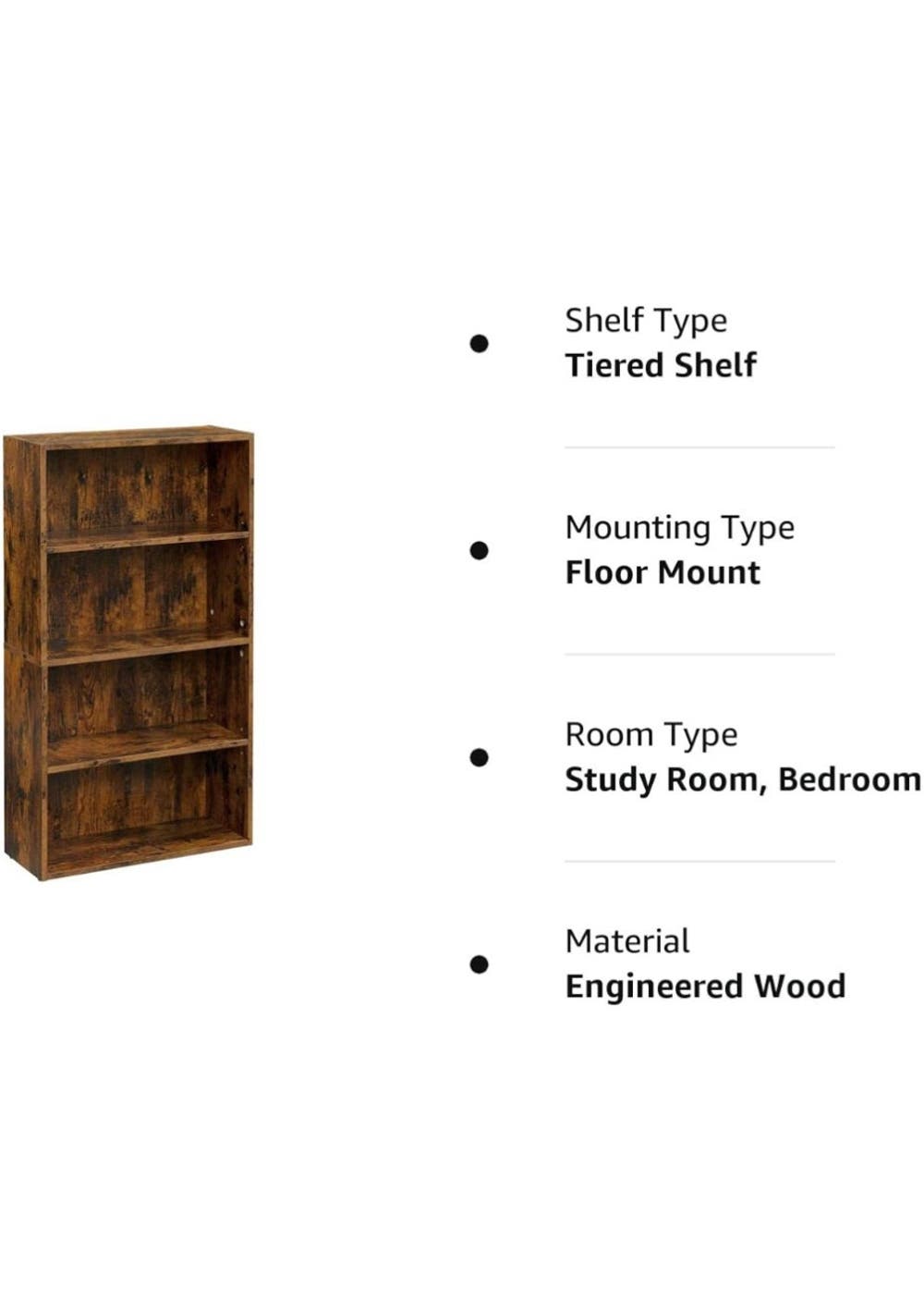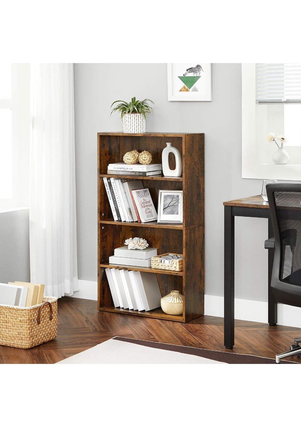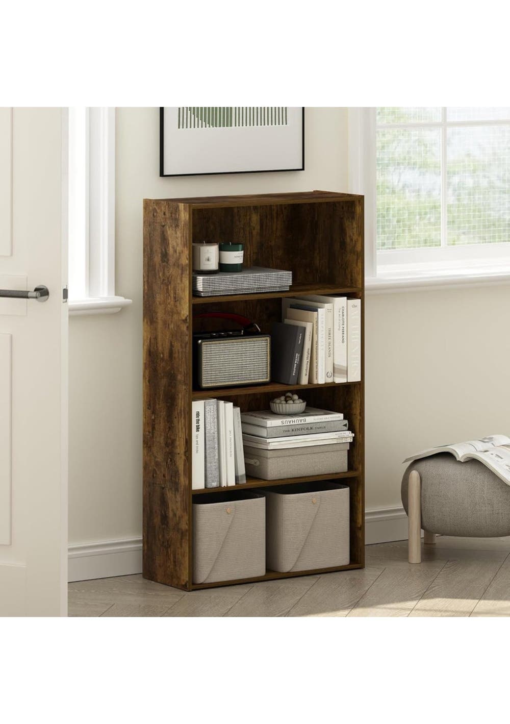 Rustic 4-Tier Bookshelf Storage Shelf