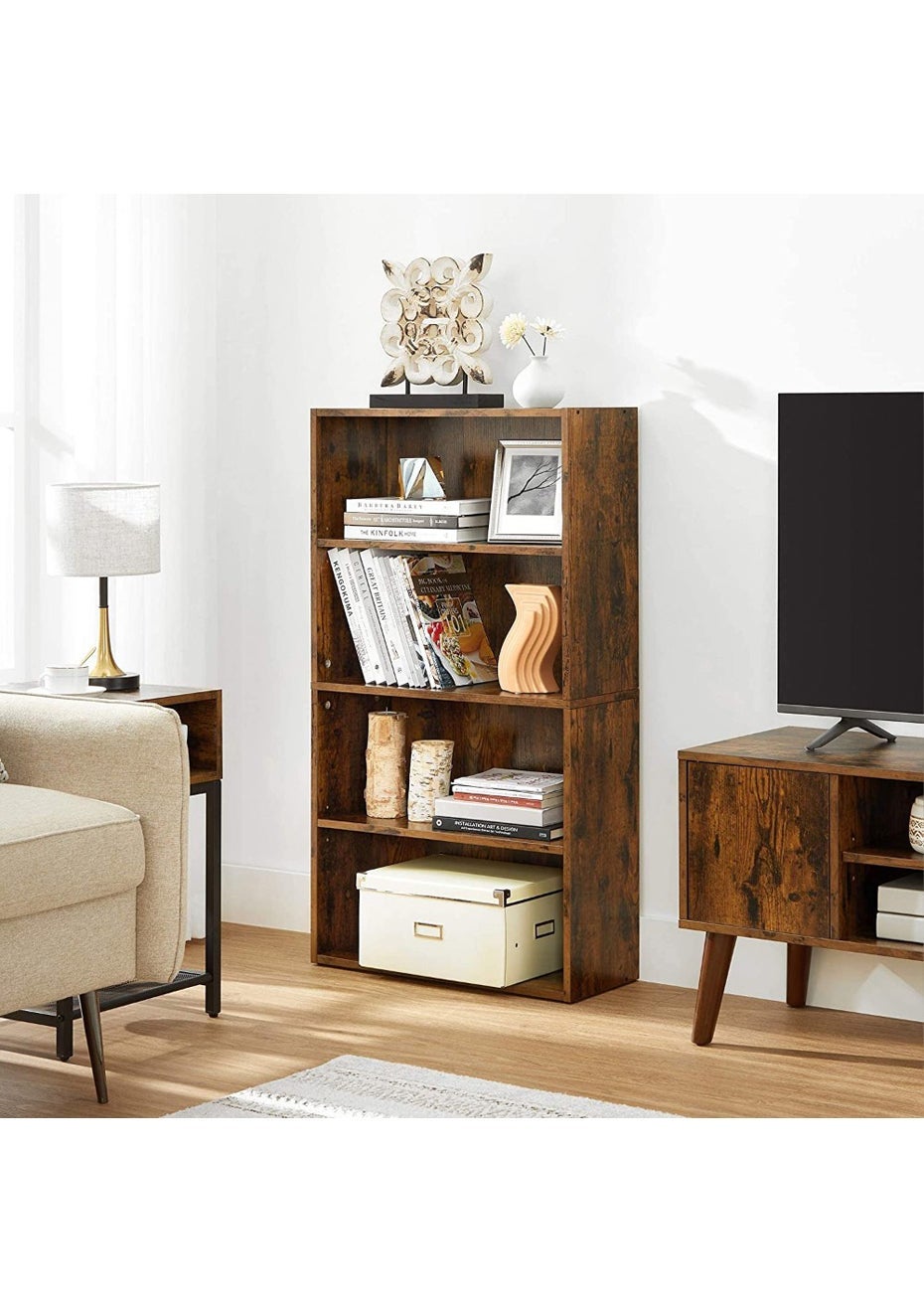 1. Four spacious open tiers allow easy access to books, decorative items, storage bins, or office supplies, ideal for home and office organization.