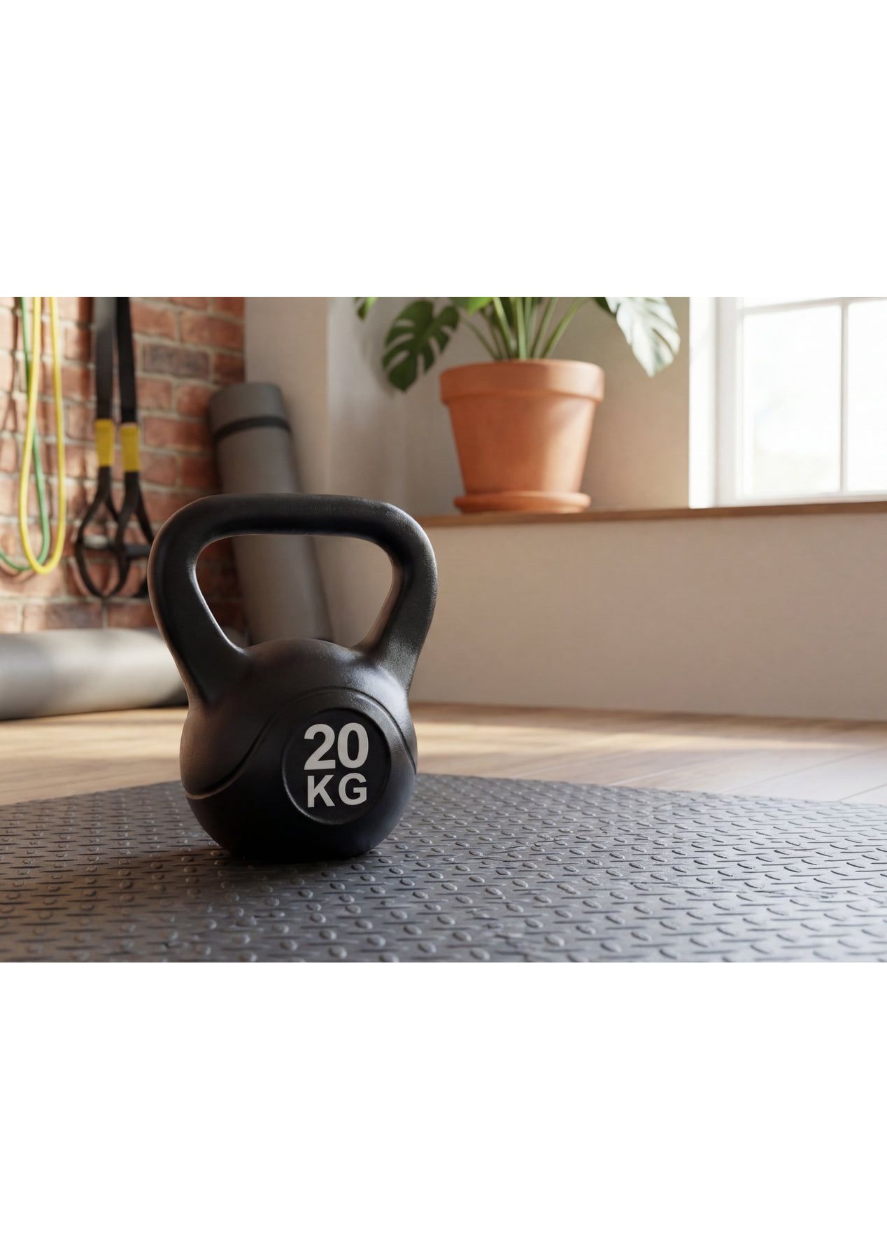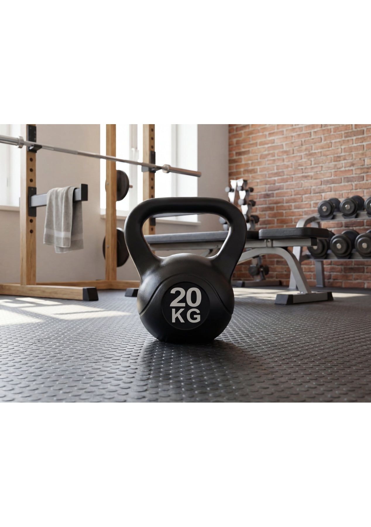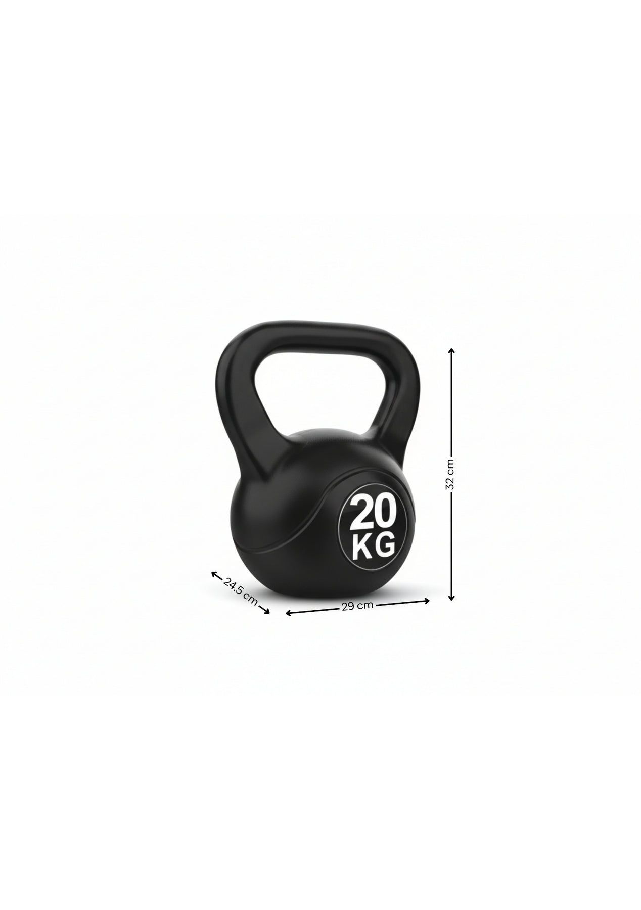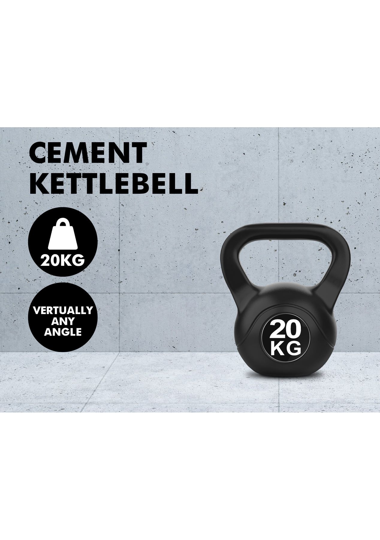 Cement Kettlebell - 20kg Boost your workout with this Cement Kettlebell. It's designed for strength, endurance, and power training. Its durable PE shell with a concrete core ensures long-lasting use. The wide, ergonomic handle offers a comfortable grip for smooth and controlled motion. Perfect for squats, swings, snatches, and full-body workouts at home or the gym. Features:Concrete-filled kettlebell for durabilityOversized handle for full-body movementComfortable, easy-to-grip designIdeal for strength, cardio, and endurance training Specifications:Color: BlackWeight: 20kgMaterial: PE with Concrete FillingProduct Dimension: 29 cm (L) x 24.5 cm (W) x 32 cm (H) Package ContentsÔºö1 x Cement Kettlebell - 20kg