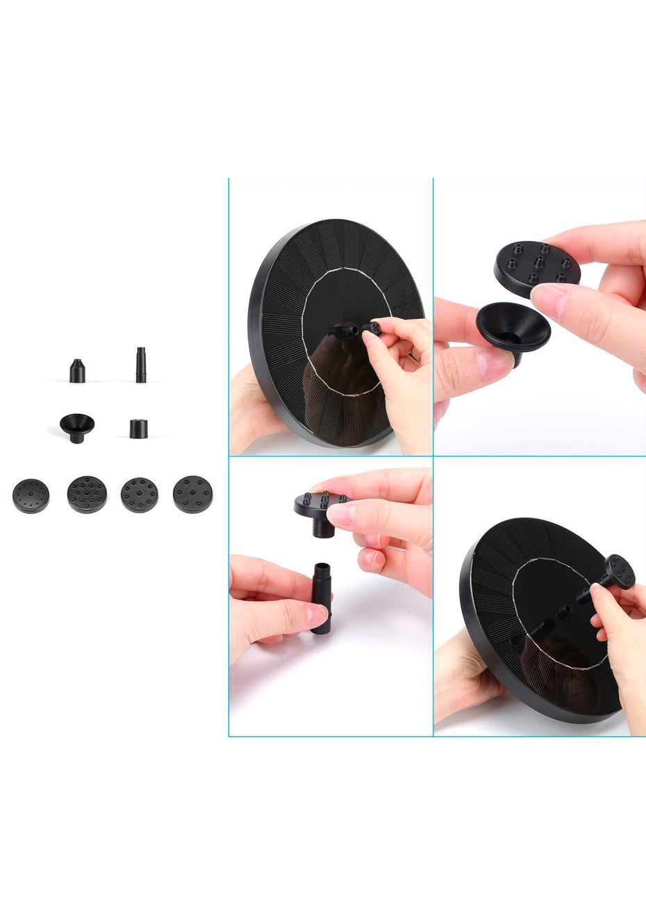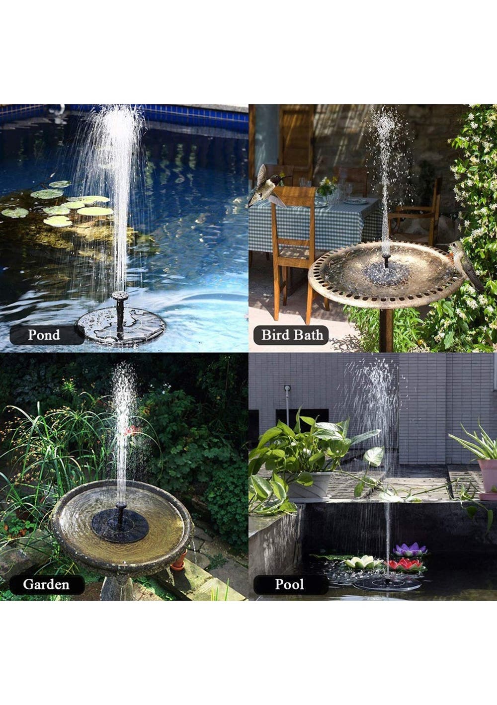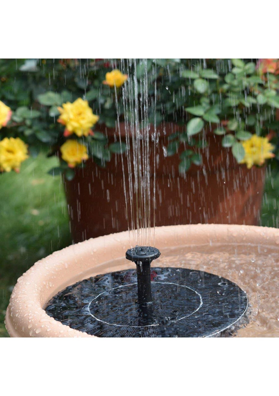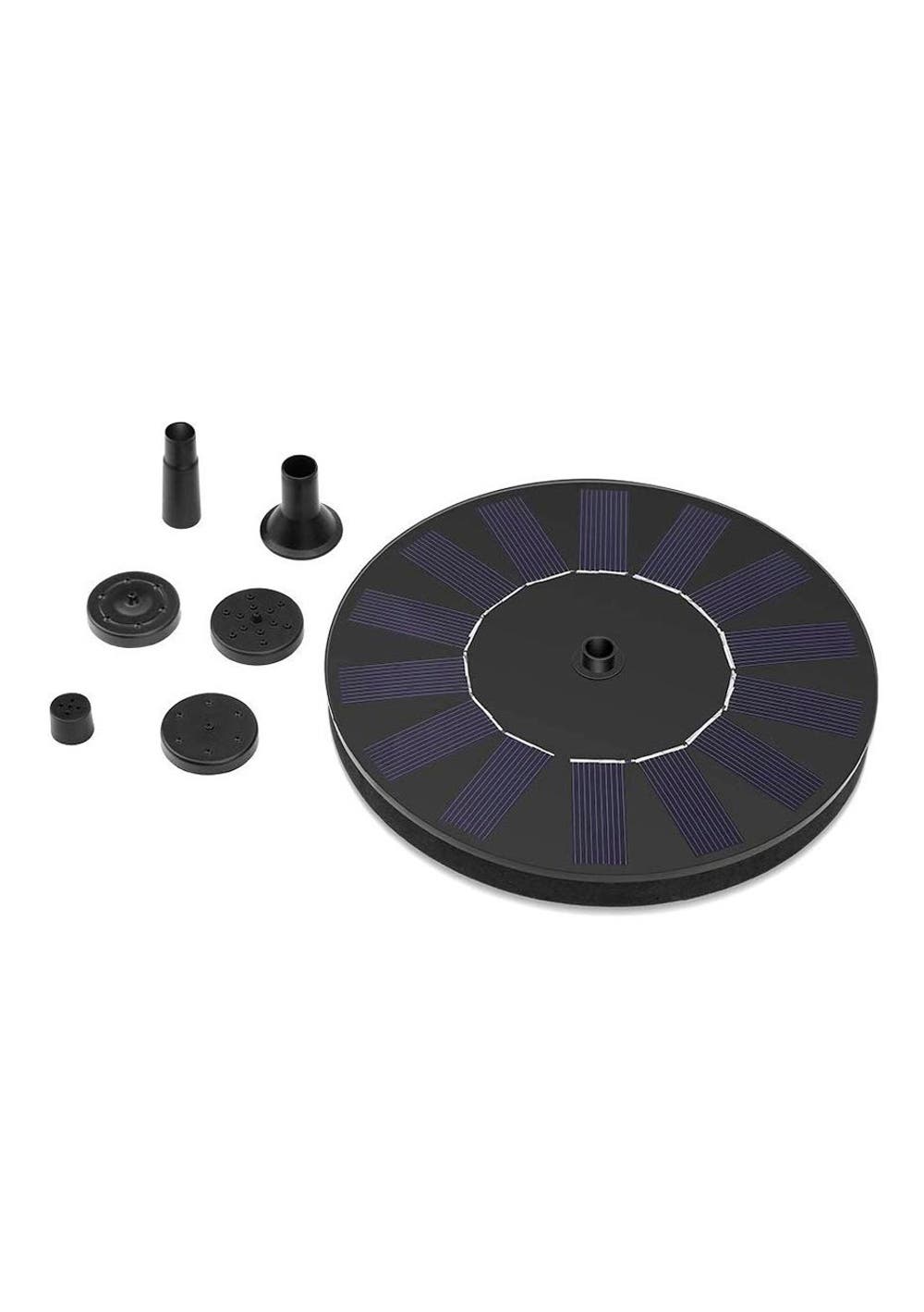 Features  No mains electricity required, runs automatically in 3s when sunlight is sufficient.  Place it somewhere where sunlight will shine directly on the unit for best results  This new solar pump of round shape, small size features flexible to increase the pH of water and keep water circulating Whats in the box”  1 x Solar Powered Fountain Pump  1 x Spray Head Set  1 x Manual