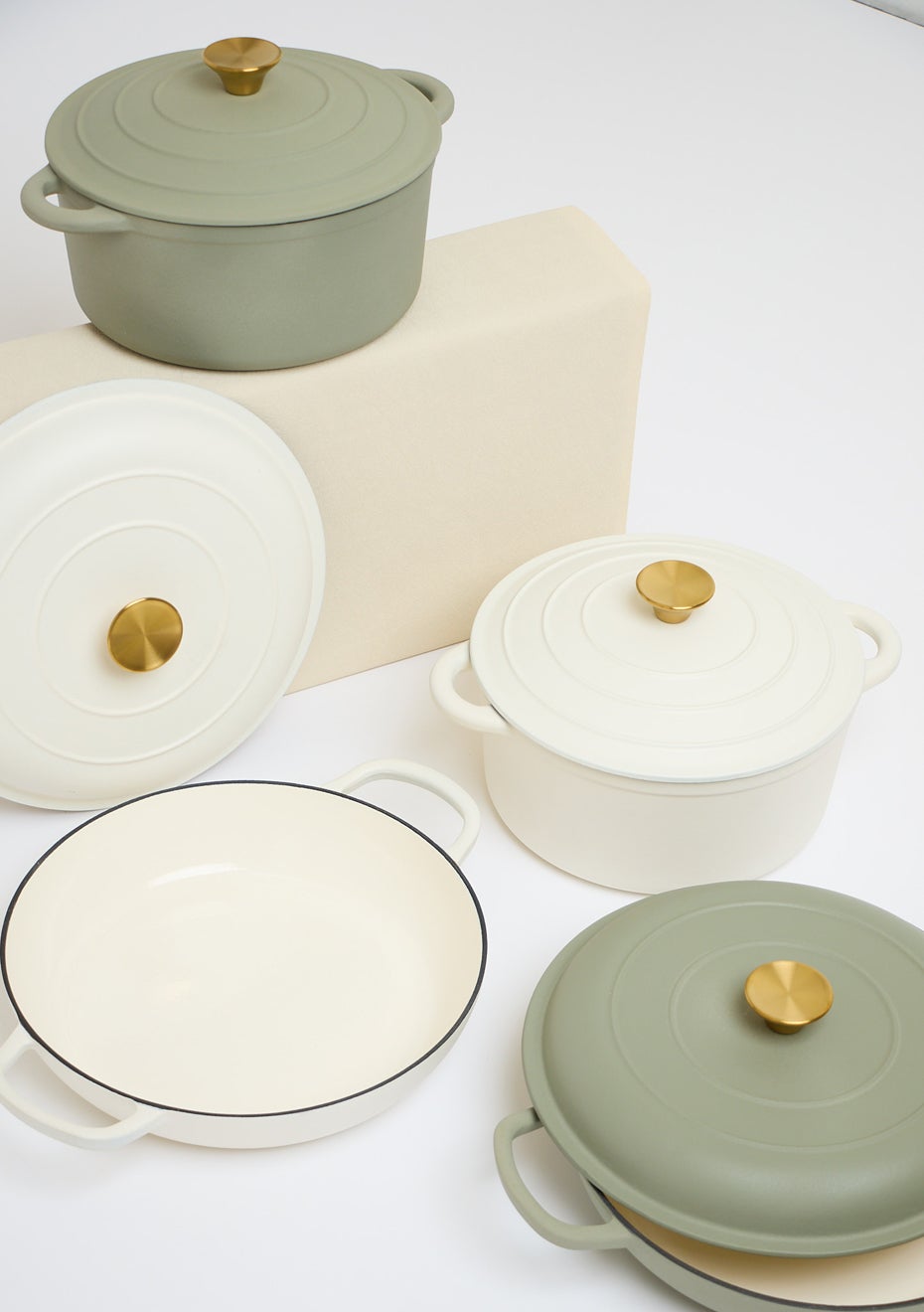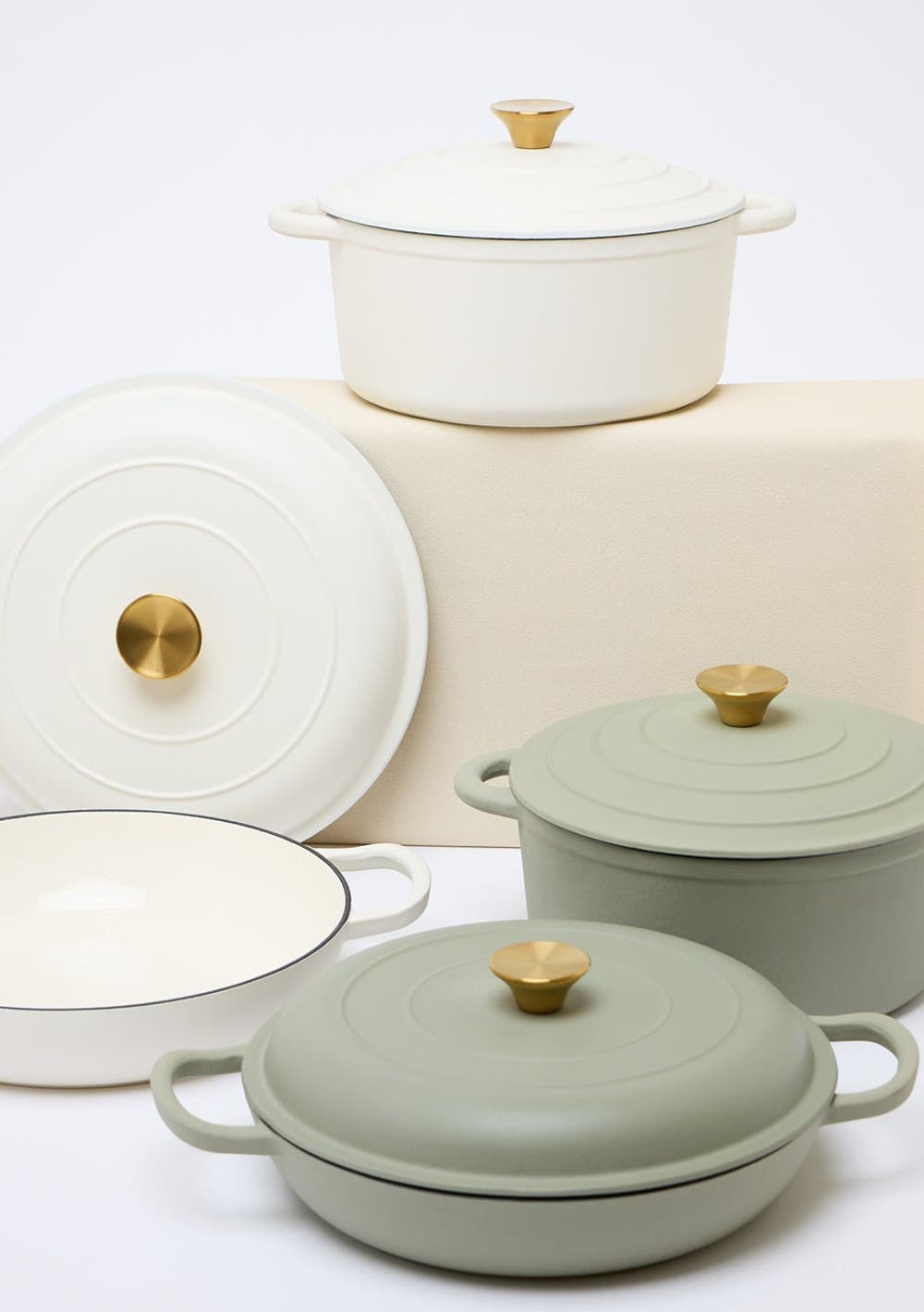 George Collective - Cast Iron Round Casserole 26cm - Matte Crème/Gold Lid