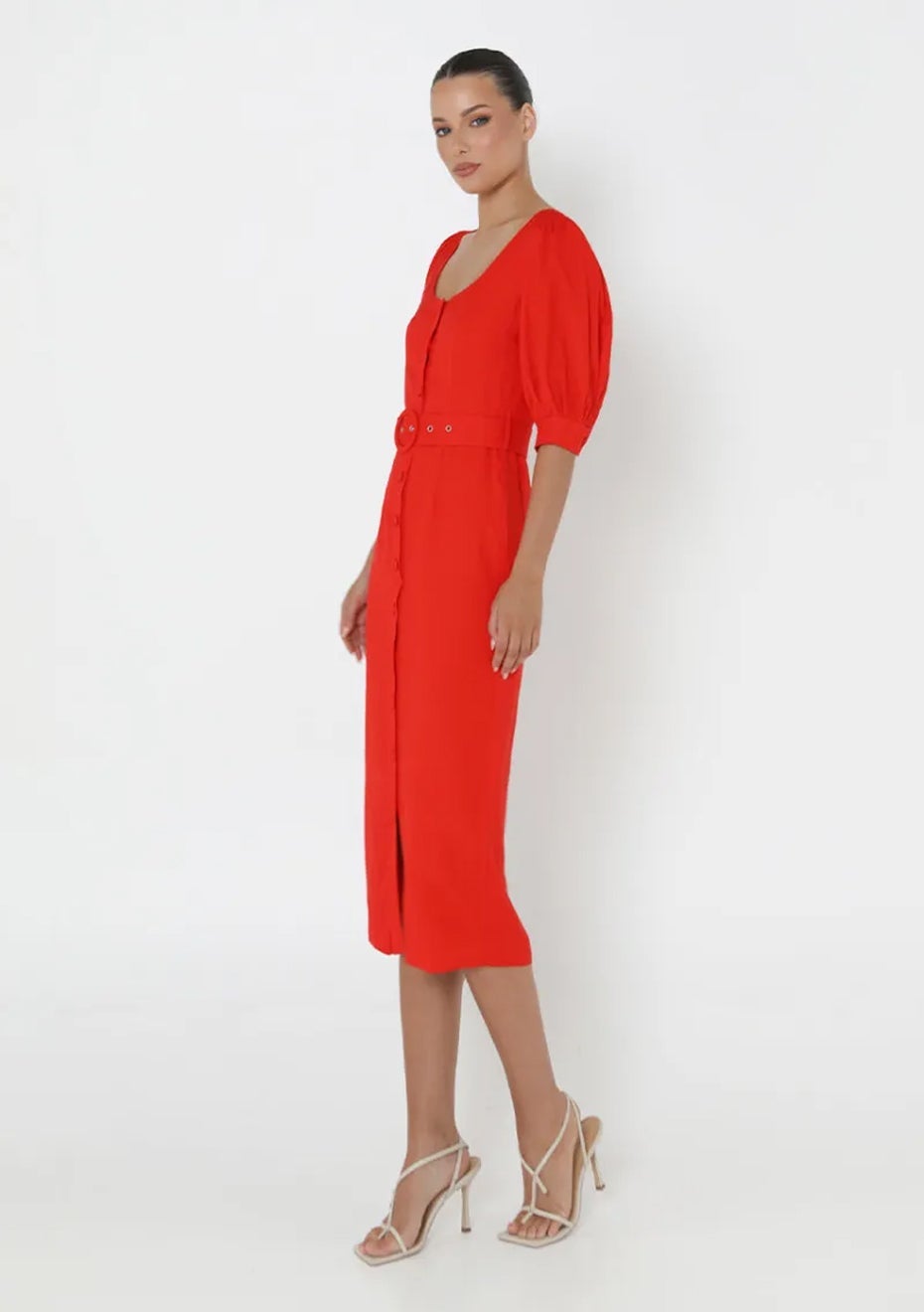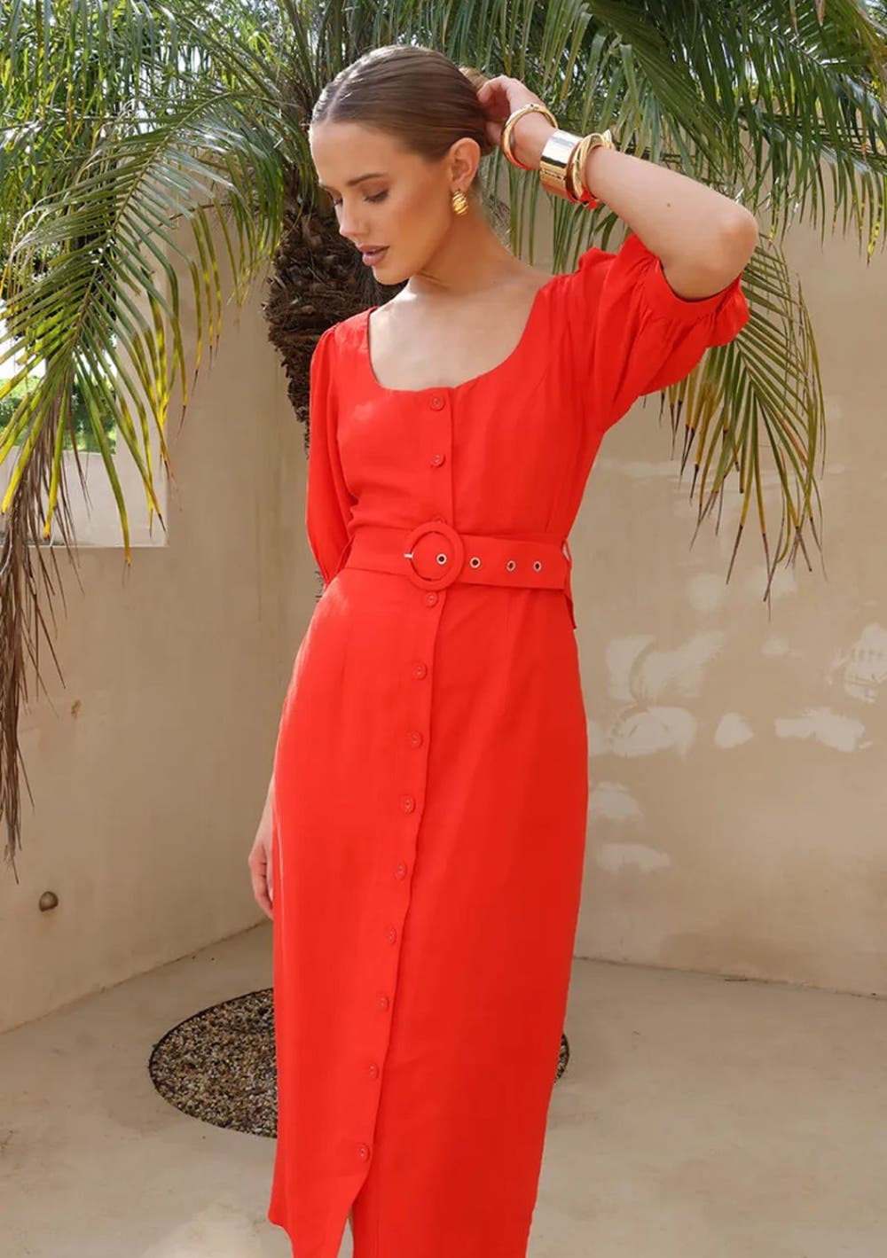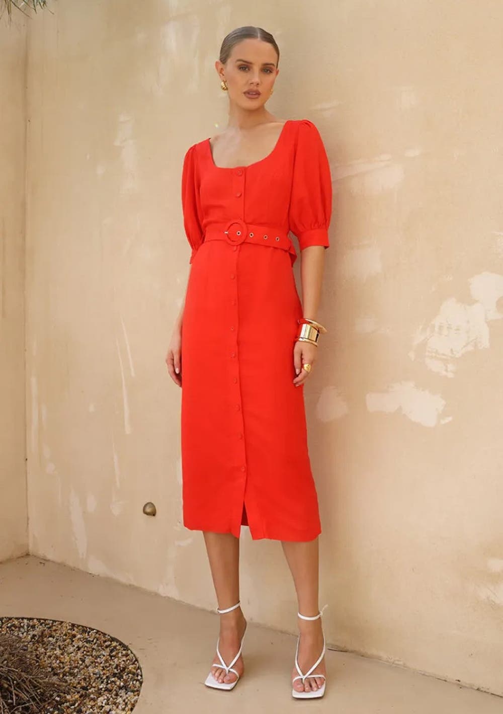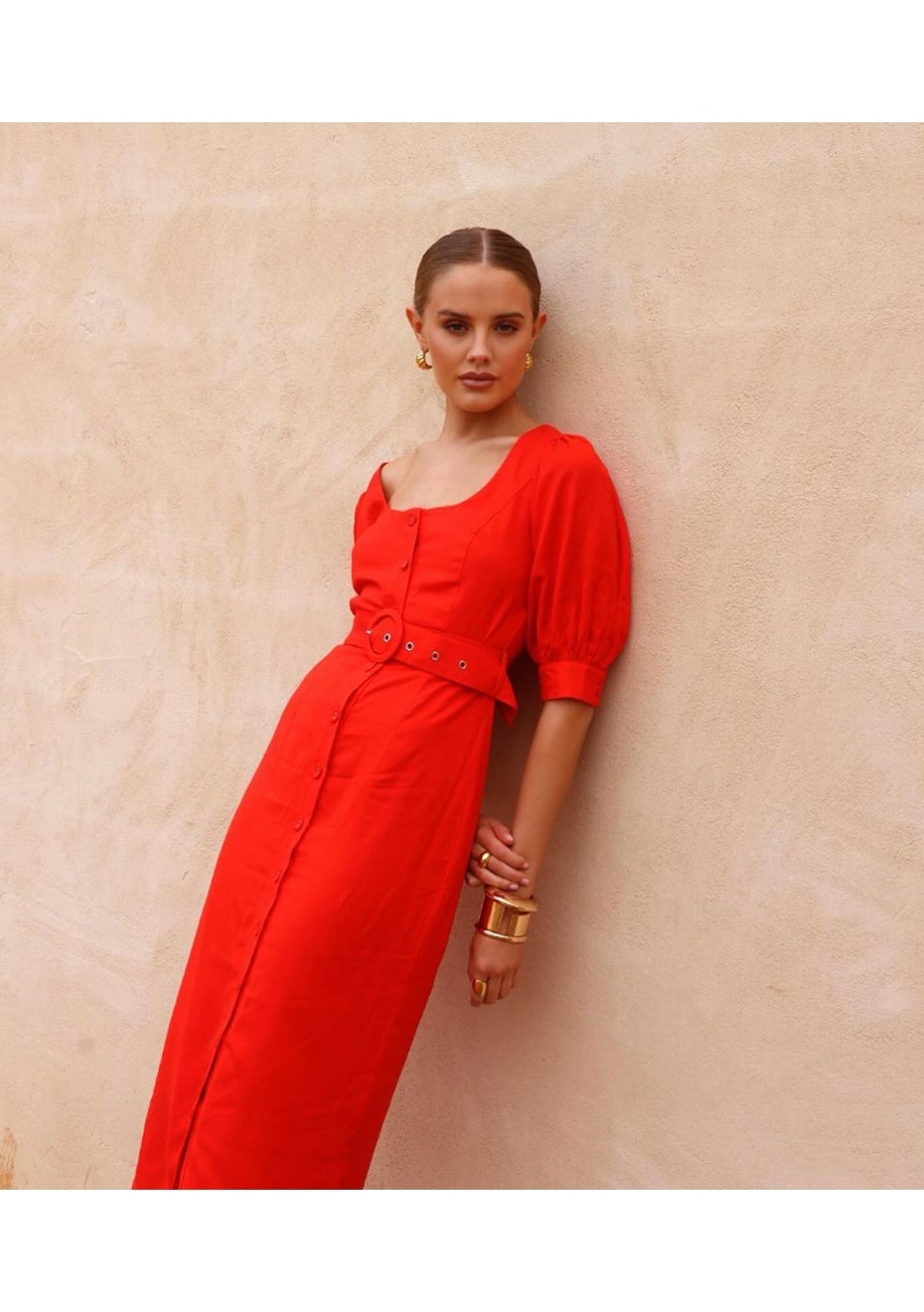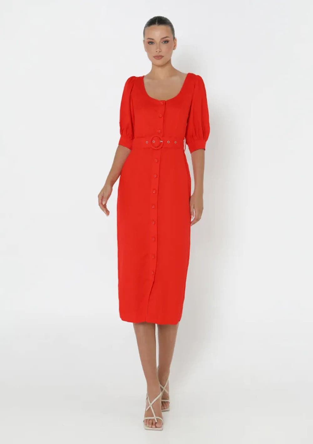 Introducing the beautiful Darci Midi Dress by Madison The Label. This style features a scooped neckline, center front button closure, puff sleeves with gathers and a feature belt at the waist. - Length: 116cm - Scooped neckline - Centre front button closure - Puff sleeves with gathers - Belt at waist - Cotton linen blend fabrication - Dress is lined Cold hand wash. Do not bleach. Warm iron. Dry clean recommended. Main Material: 70% Cotton, 30% Linen t's selling price and the MRSP or RRP. Suppliers provide these prices as either the official price set by the retailer or brand, which may vary between different retailers and regions or the price they recommend for sale. While we require suppliers to provide evidence of an RRP or MRSP, the product may not have been sold at that price before or recently in New Zealand. NZD RRP or MRSP is provided by the supplier or calculated by using the market spot rate at time of listing, we use this as the strikethrough price and calculate the discount percentage based on the difference between this price and Onceit’s selling price. Onceit sources product globally. Onceit displays a strikethrough price based on the Manufacturer's Recommended Selling Price (MRSP) or recommended retail price (RRP) to show a price comparison. The discount percentage reflects the difference between Onceing price and the ORP or RRP. Suppliers provide these prices as either the original listed price or the price they recommend for sale. While we require suppliers to provide evidence of an RRP or ORP, the product may not have been sold at that price before or recently in New Zealand. NZD RRP or ORP is provided by the supplier or calculated by using the market spot rate at time of listing, we use this as the strikethrough price and calculate the discount percentage based on the difference between this price and Onceit’s selling price.