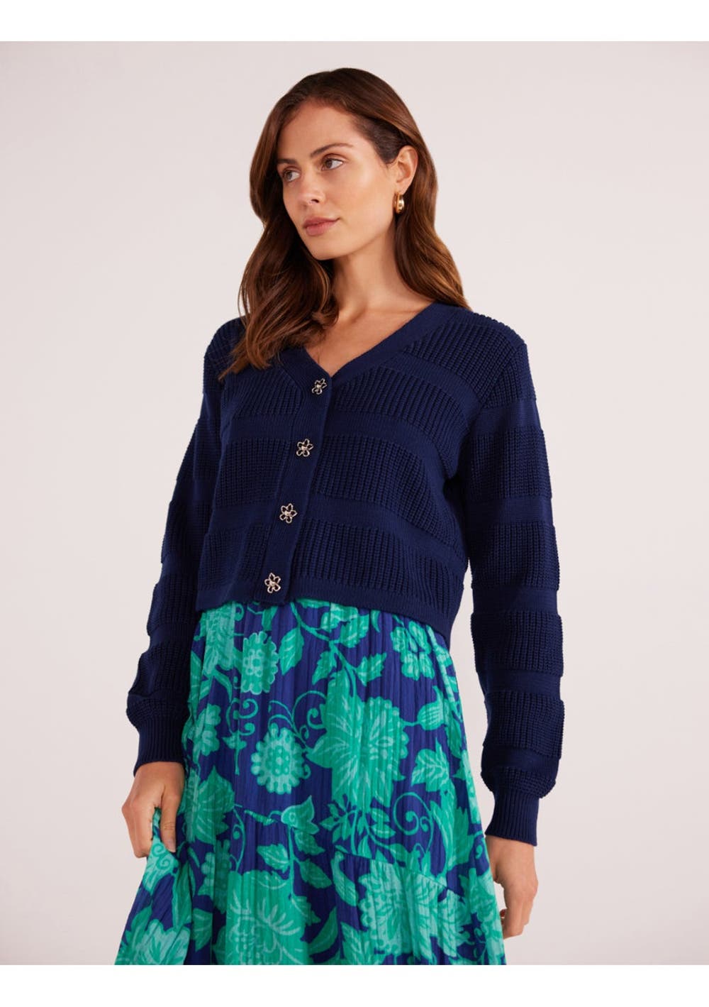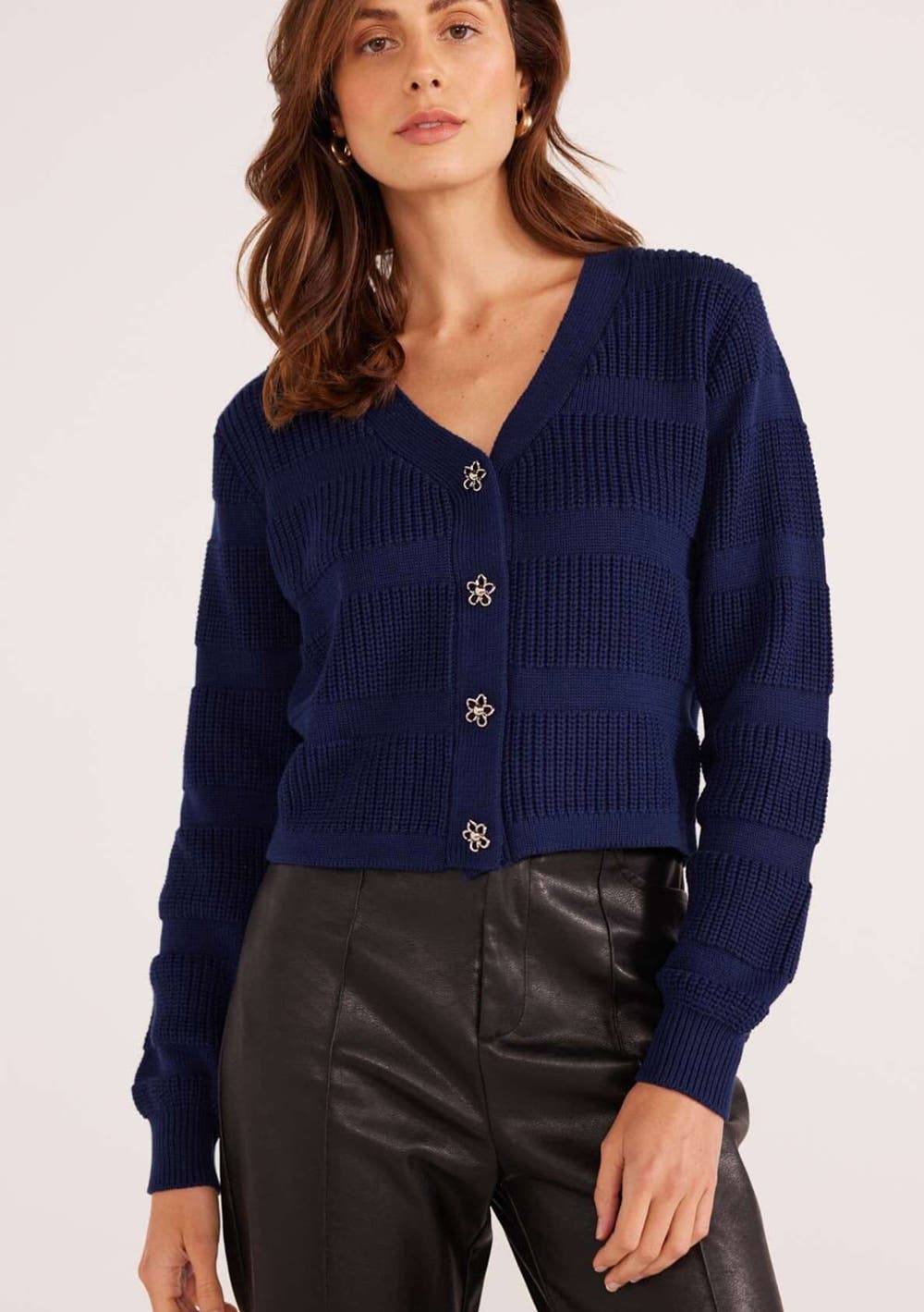 Minkpink - Macy Stripe Rib Knit Cardigan - Navy