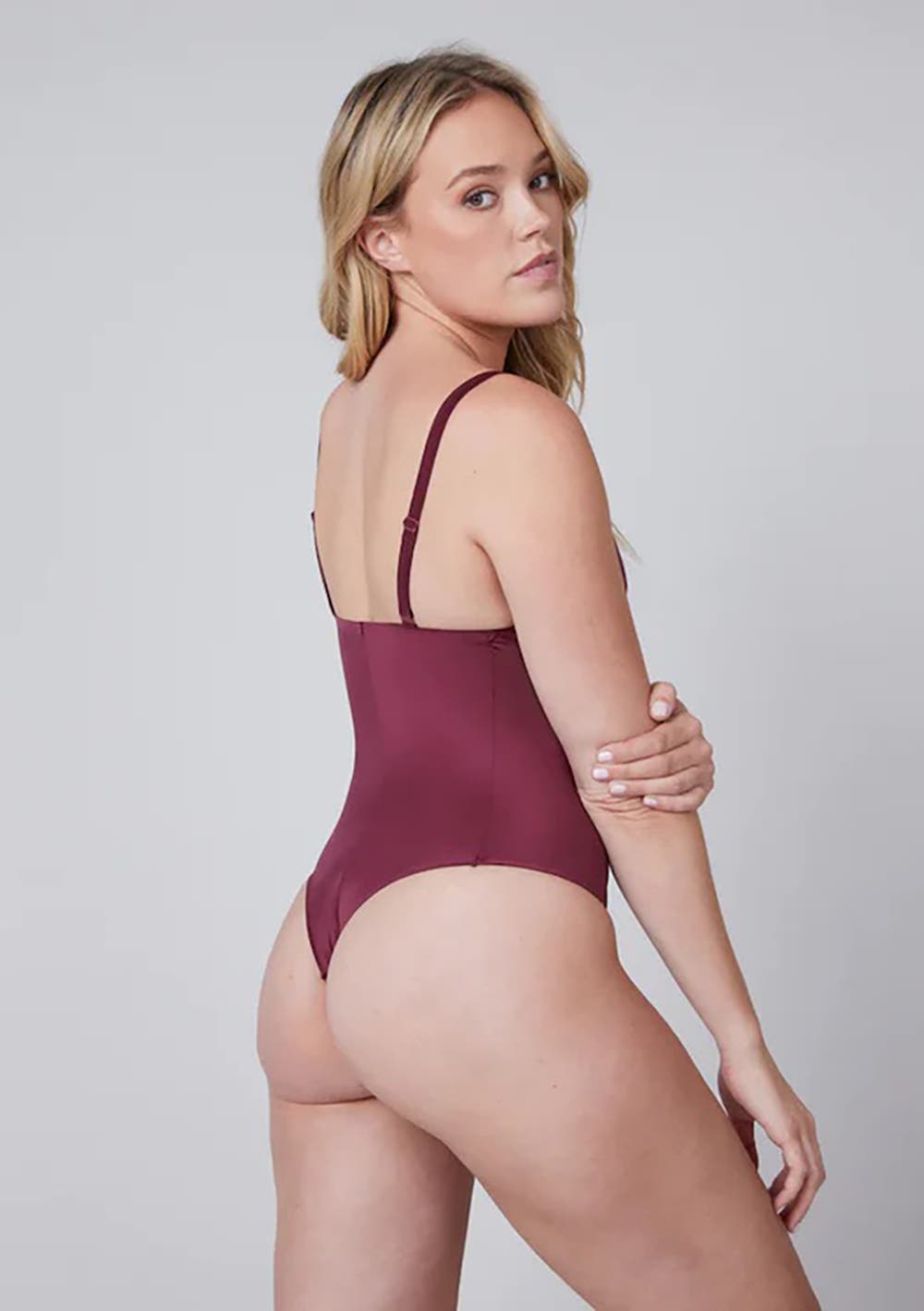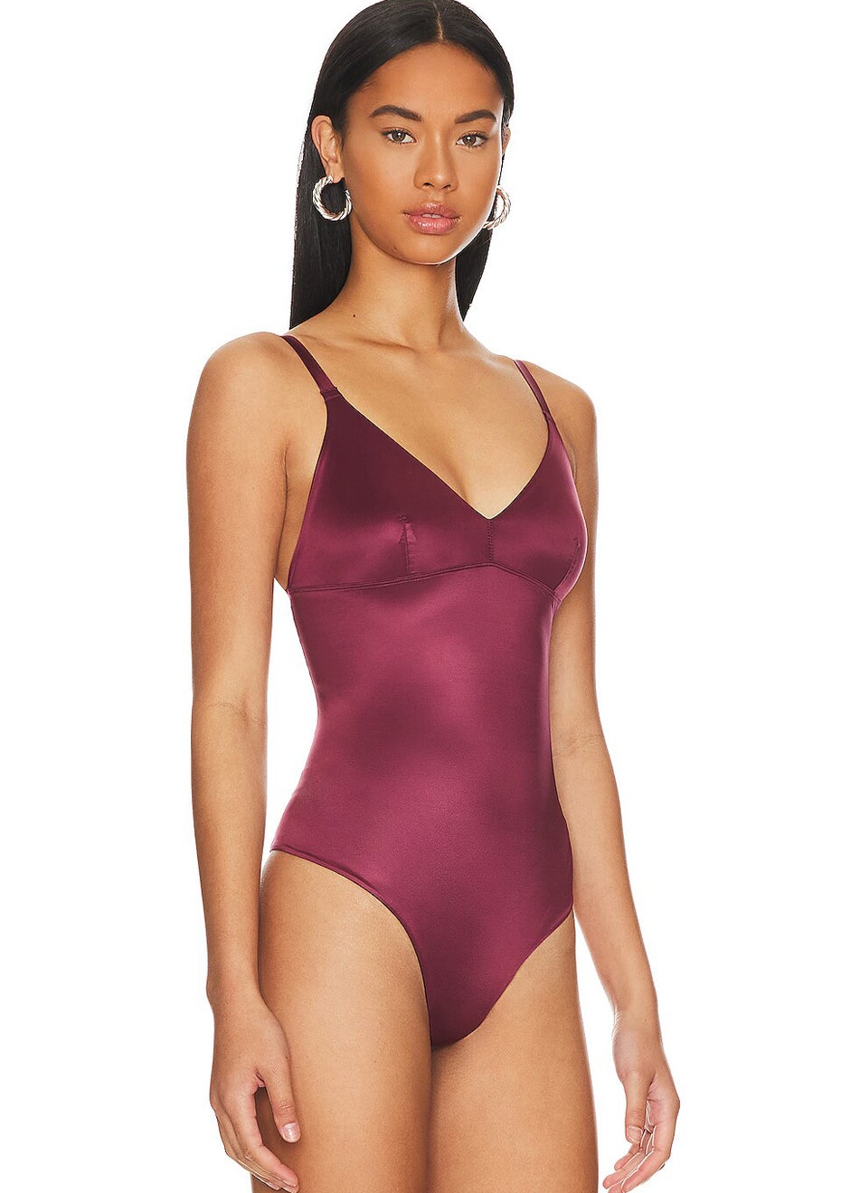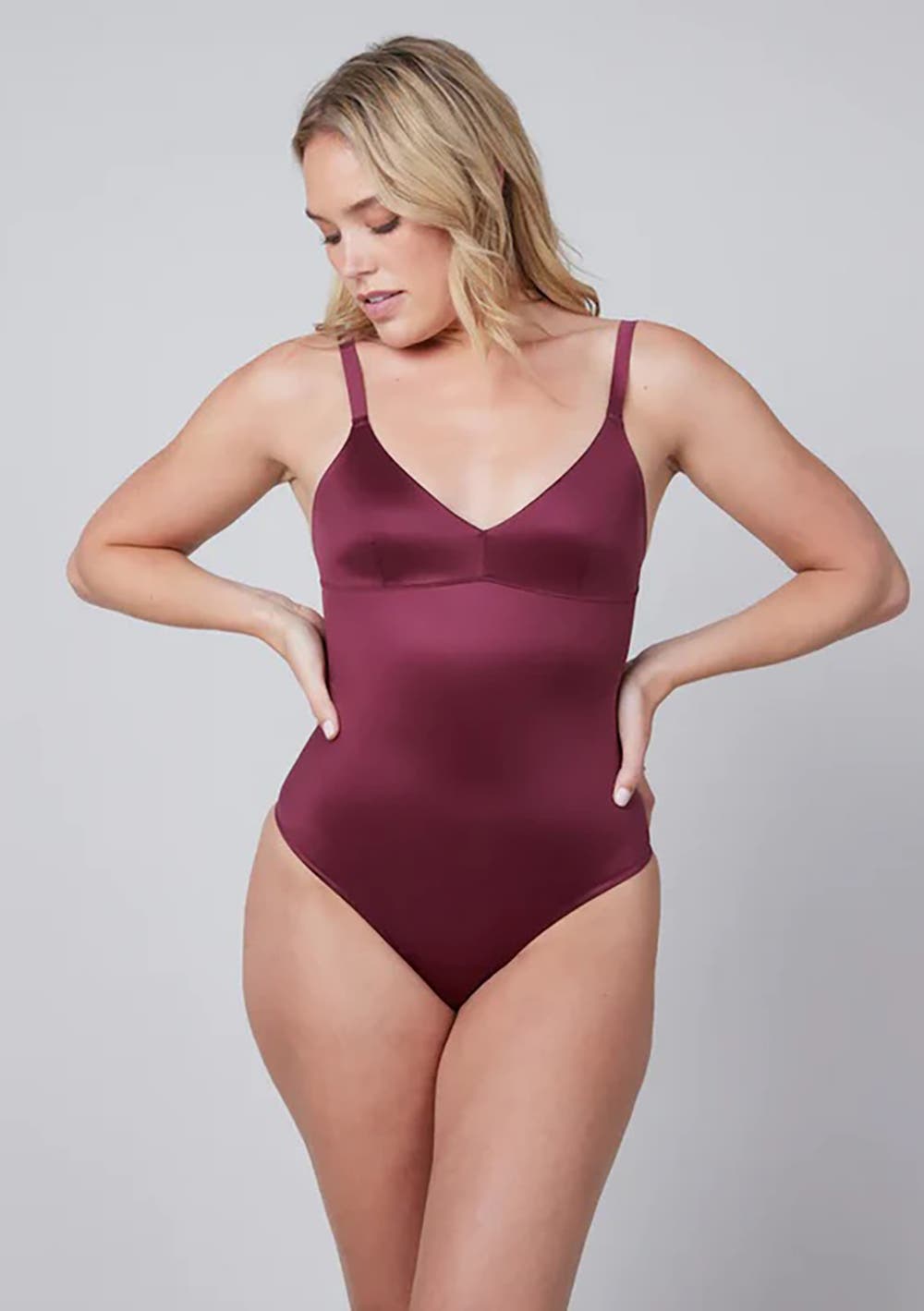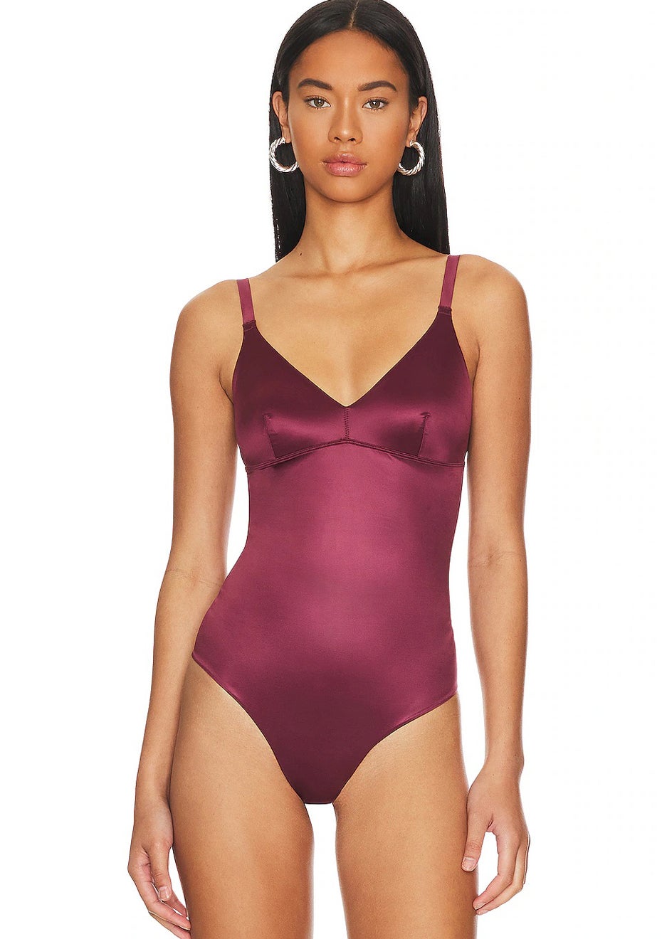 Spanx - Womens Shaping Satin-Thong Bodysuit - Sangria