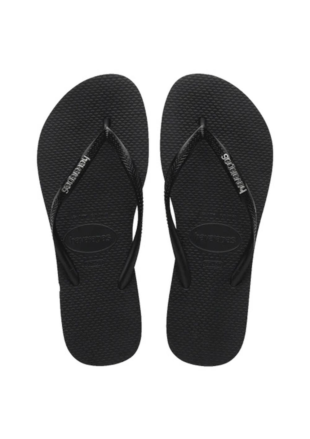 Havaianas - Womens Slim Logo Metallic Jandals - Black/Silver